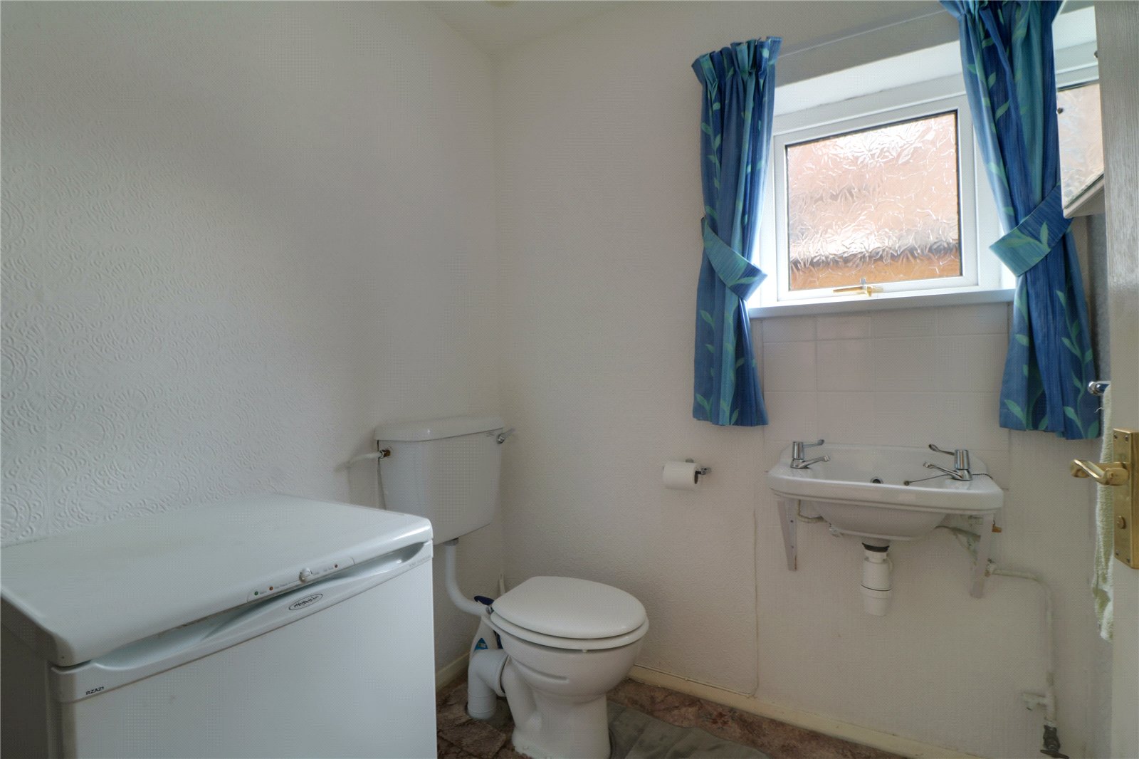 Cloakroom 6'1" x 9'3" (1.85m x 2.82m). With a side uPVC double glazed window providing a two piece suite comprising a low flush WC and a wall mounted wash hand basin with tiled splash back and under the stairs storage.