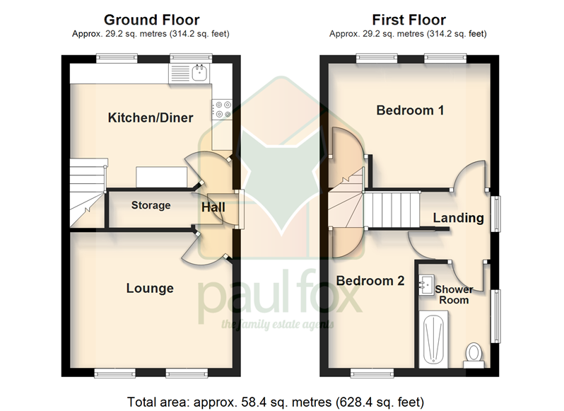 Front Bedroom 2 10'10" x 8'6" (3.3m x 2.6m). Front uPVC double glazed window and a built-in over the stairs storage cupboard.