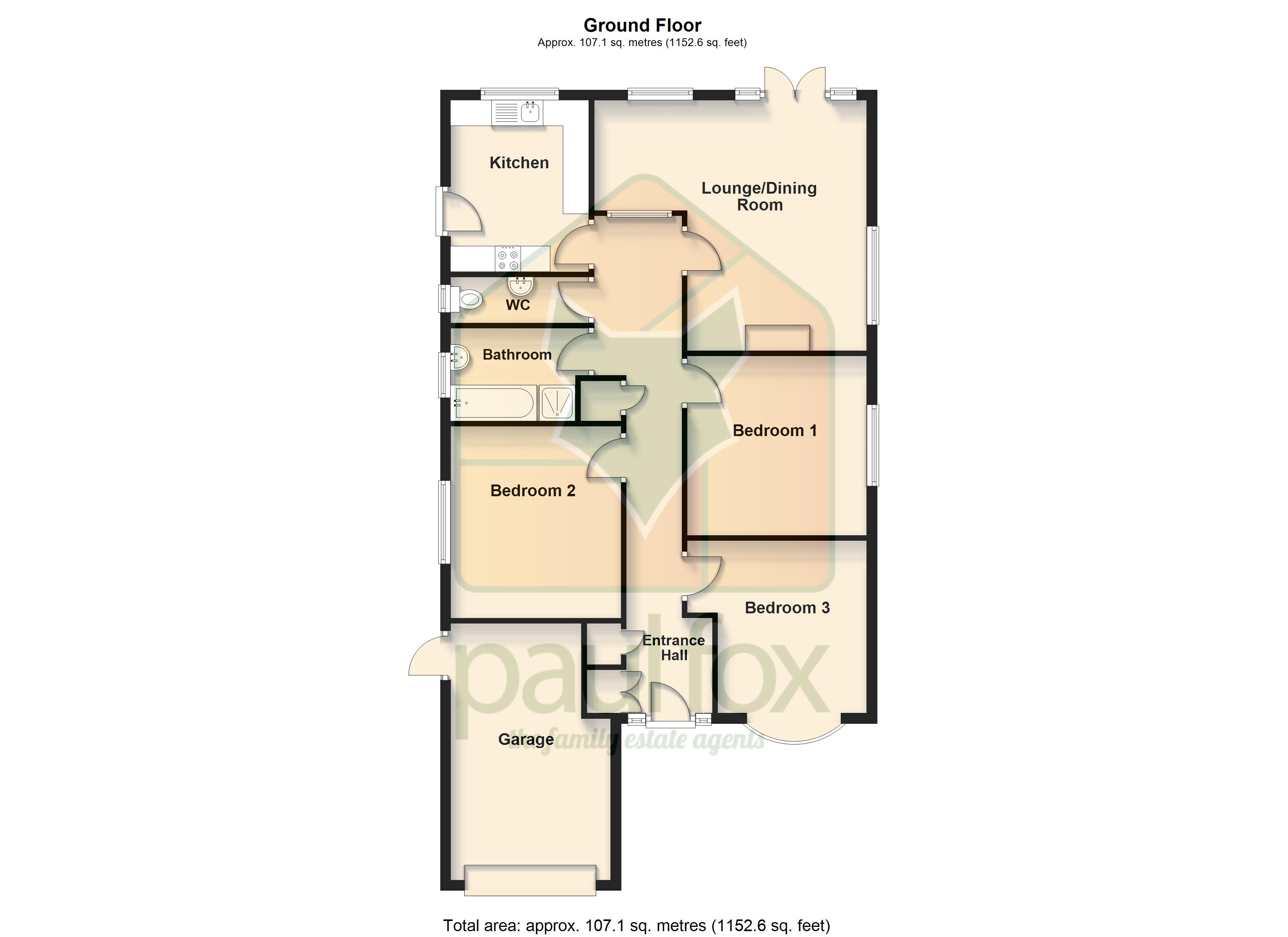Bedroom 3 11' x 11'6" (3.35m x 3.5m).