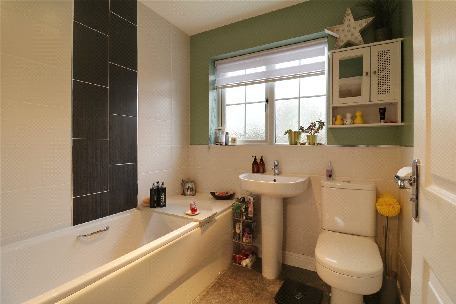 Main Family Bathroom 6'3" x 6'7" (1.9m x 2m). With a rear uPVC double glazed window with frosted glazing, a three piece suite comprising a pedestal wash hand basin and a low flush WC and partly tiled walls, ceiling spotlights and extractor fan.