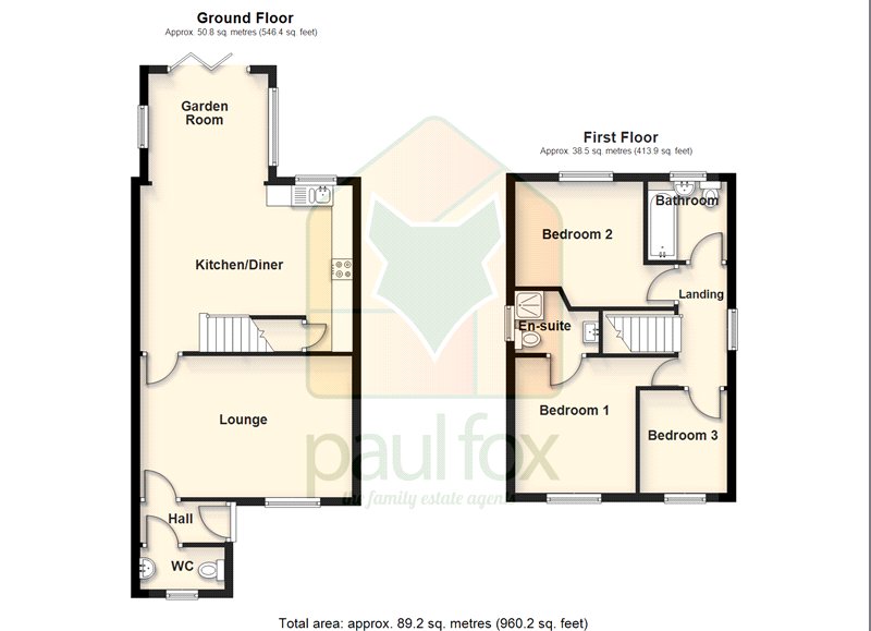 Cloakroom 3'3" x 6'7" (1m x 2m). Has a front uPVC double glazed window with frosted glazing providing a two piece suite comprising a low flush WC and a pedestal wash hand basin with tiled splash back, continuation of vinyl flooring, wall to ceiling coving and extractor fan.