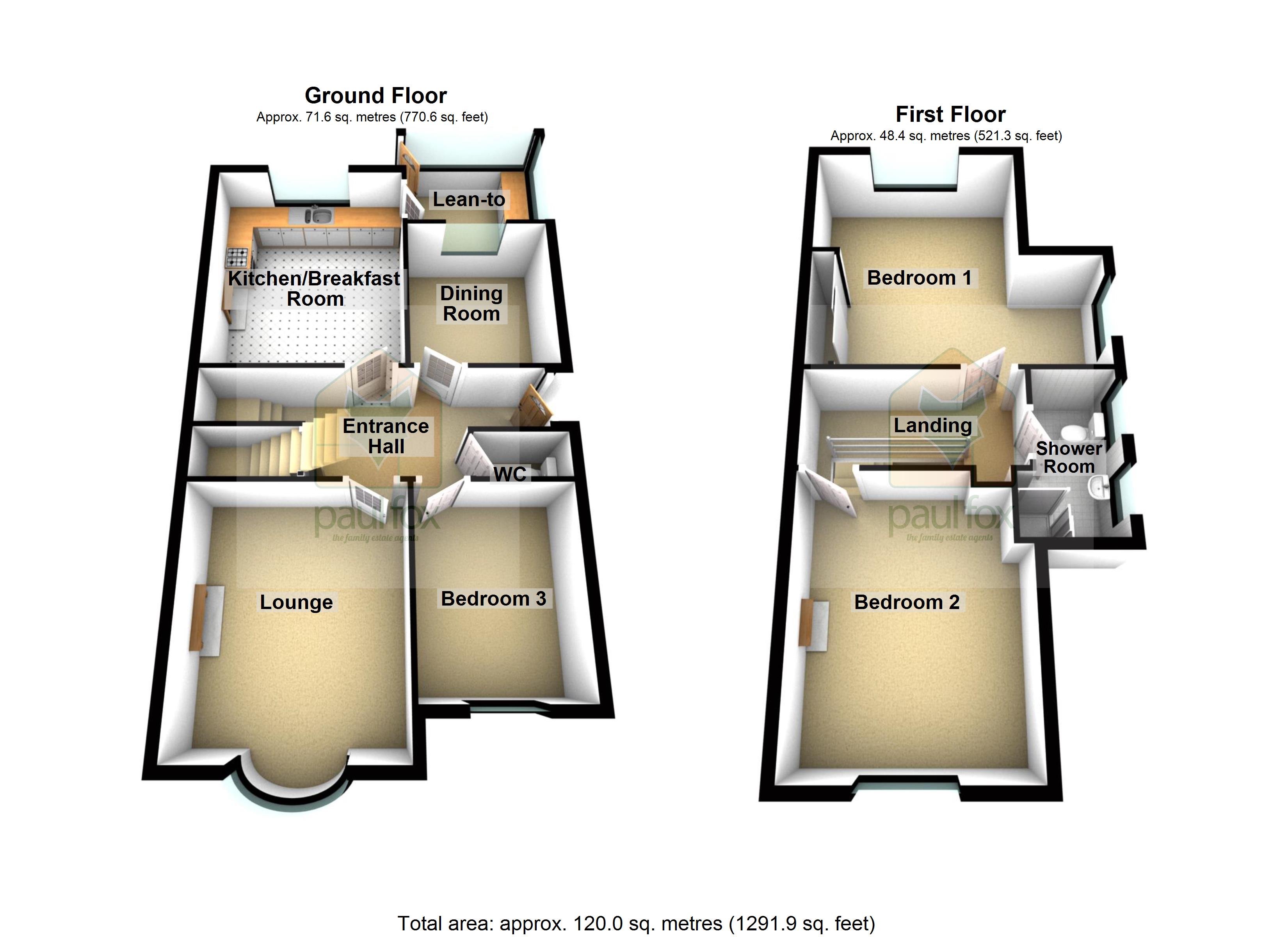 Lean To/Conservatory 9'2" x 6'11" (2.8m x 2.1m).