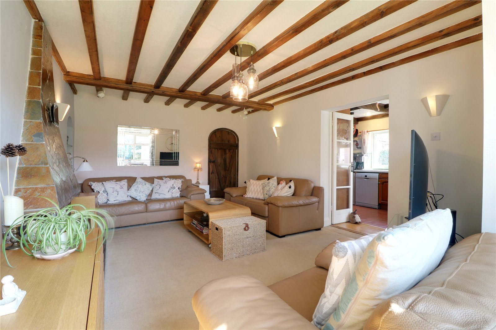 Main Living Room 15'11" x 12'2" (4.85m x 3.7m). With a rear bay uPVC double glazed window, further decorative beams to the ceiling, TV input, three single wall lights, skirting board radiators to the perimeter, a feature open recessed fireplace with an electric log effect fire with decorative surrounding bricked backing and twin hardwood glazed doors allows access through to;