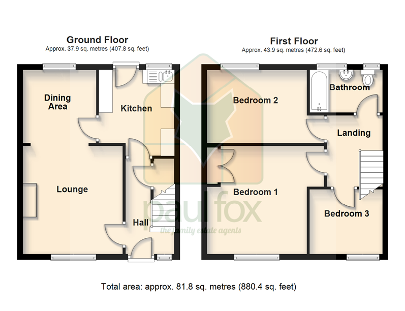 Family Bathroom 7'10" x 5'5" (2.4m x 1.65m). With two rear uPVC double glazed windows with frosted glazing, a three piece suite comprising a panelled bath with overhead electric Tritan shower with glazed screen, pedestal wash hand basin and a low flush WC, tiling to the walls, vinyl flooring, wall mounted chrome towel heater and extractor fan.