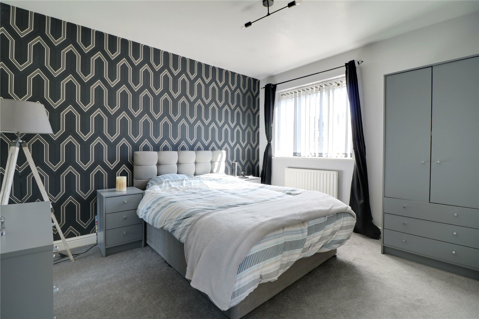Front Double Bedroom 1 9'10" x 10' (3m x 3.05m). With a front hardwood double glazed window and a fitted wardrobe with sliding doors.
