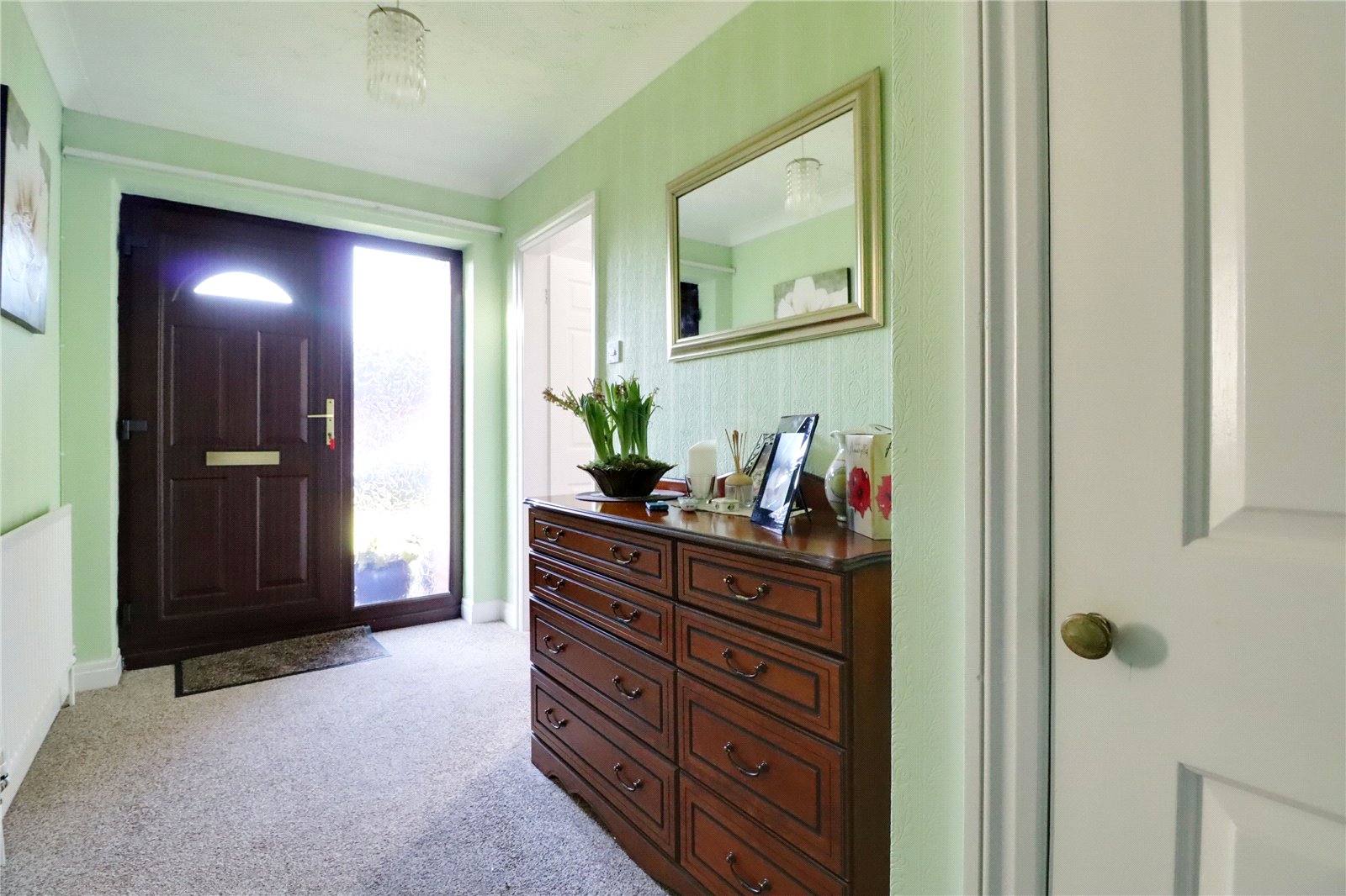 Central Reception Hallway 5'11" x 16'2" (1.8m x 4.93m). With a front wood grain effect uPVC double glazed entrance door with patterned glazing and adjoining side light, wall to ceiling coving, loft access, built-in cloaks cupboard with hanging rail and shelving and double airing cupboard.