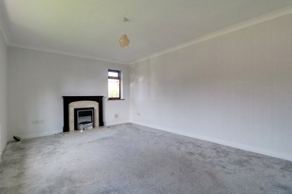 Spacious Front Lounge 16'10" x 11'8" (5.13m x 3.56m). Enjoying a dual aspect with front and side wood grain effect uPVC double glazed windows, attractive fireplace with central electric fire, mahogany surround and projecting mantel and wall to ceiling coving.