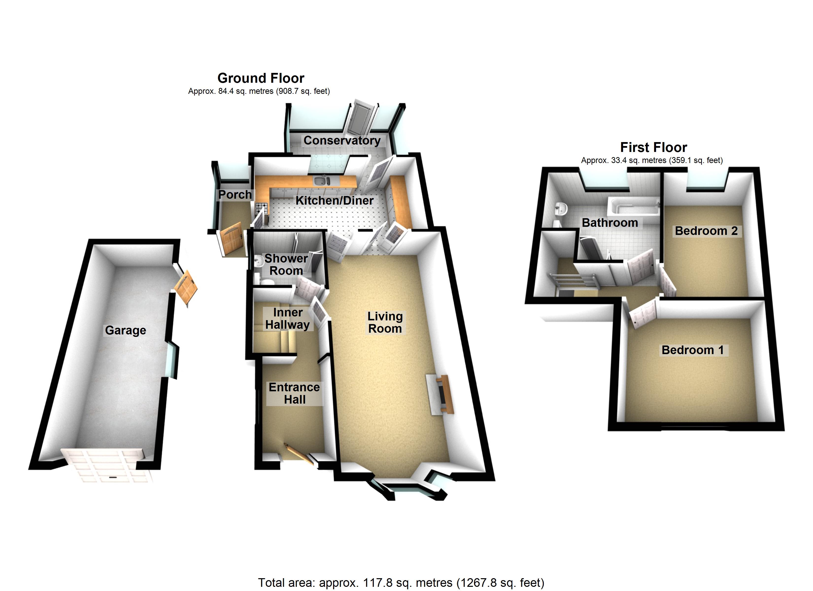 - SPACIOUS OPEN PLAN LIVING ROOM & REAR CONSERVATORY