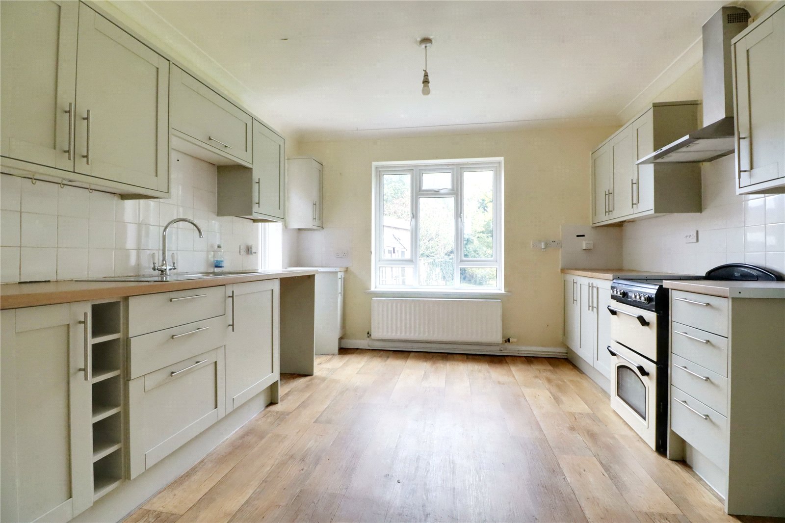 Kitchen 11'7" x 13'8" (3.53m x 4.17m). Enjoys a dual aspect with rear and side uPVC double glazed windows. The kitchen enjoys an attractive range of shaker style furniture with brushed aluminium style pull handles, butcher block worktop with tiled splashbacks incorporates a single stainless steel sink unit with block mixer tap, space for a cooker with overhead canopied extractor, cushion flooding of a wood effect, open access through to;