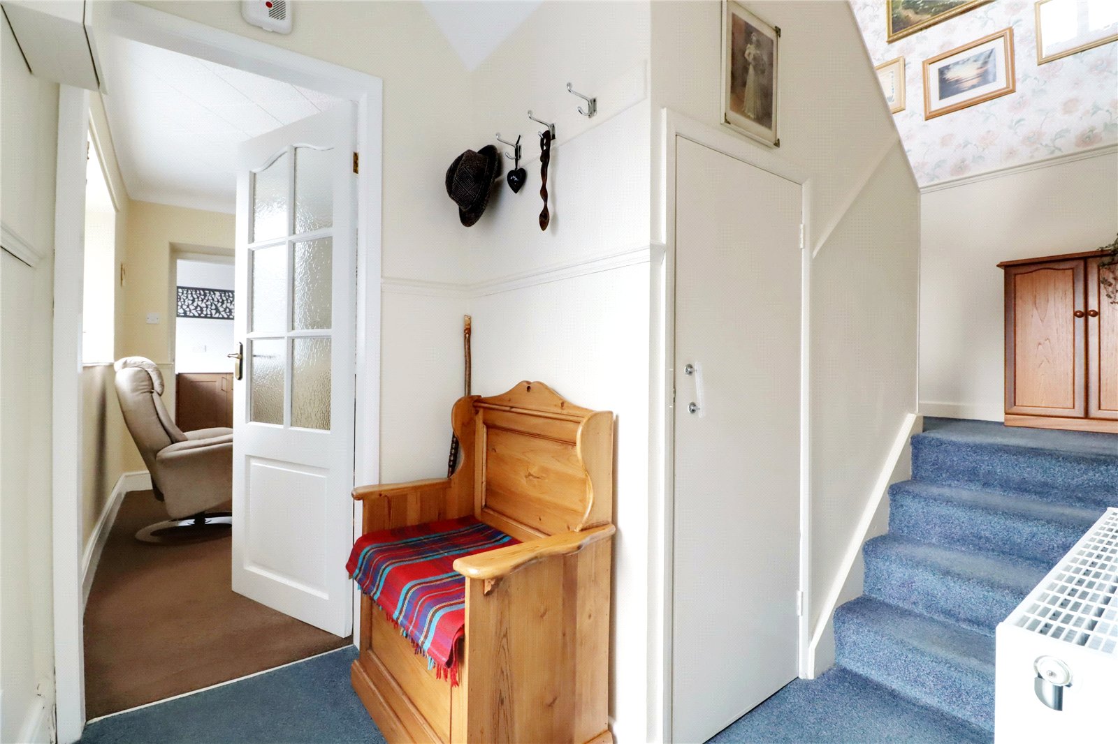 Entrance Hallway 12'6" x 6' (3.8m x 1.83m). Side uPVC double glazed entrance door, return staircase allows access to the first floor accommodation with understairs storage cupboard, dado railing, wall to ceiling coving and internal panelled and glazed door leads through to;