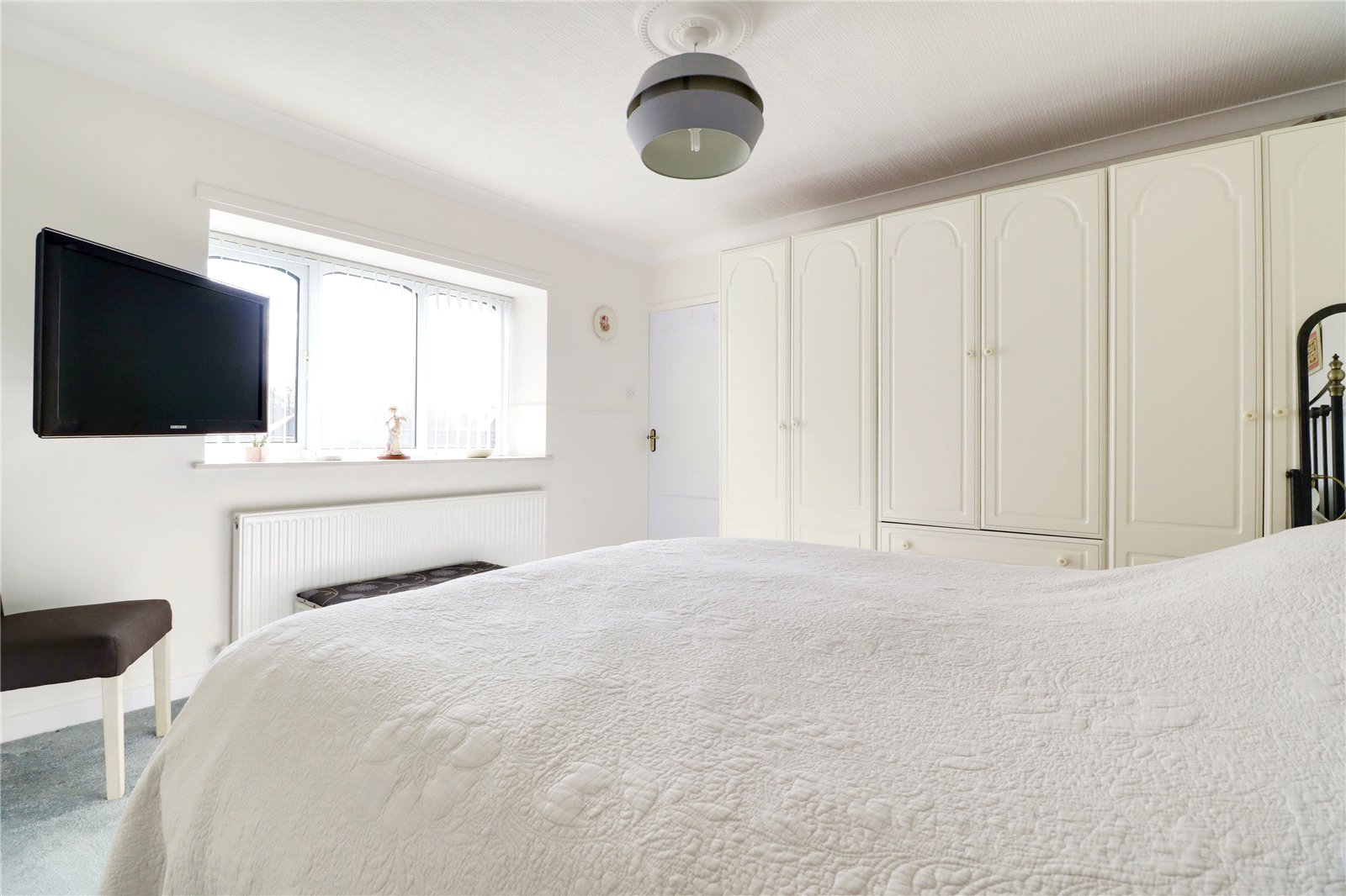 Double Bedroom 1 12'6" x 12'3" (3.8m x 3.73m). Side uPVC double glazed window, TV point, dado railing, wall to ceiling coving and ceiling rose.
