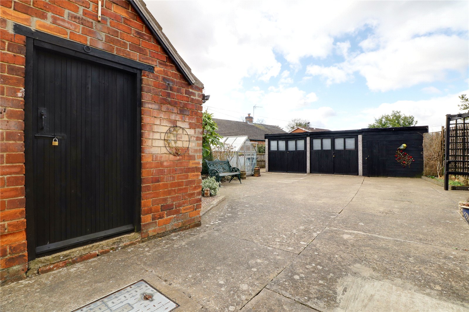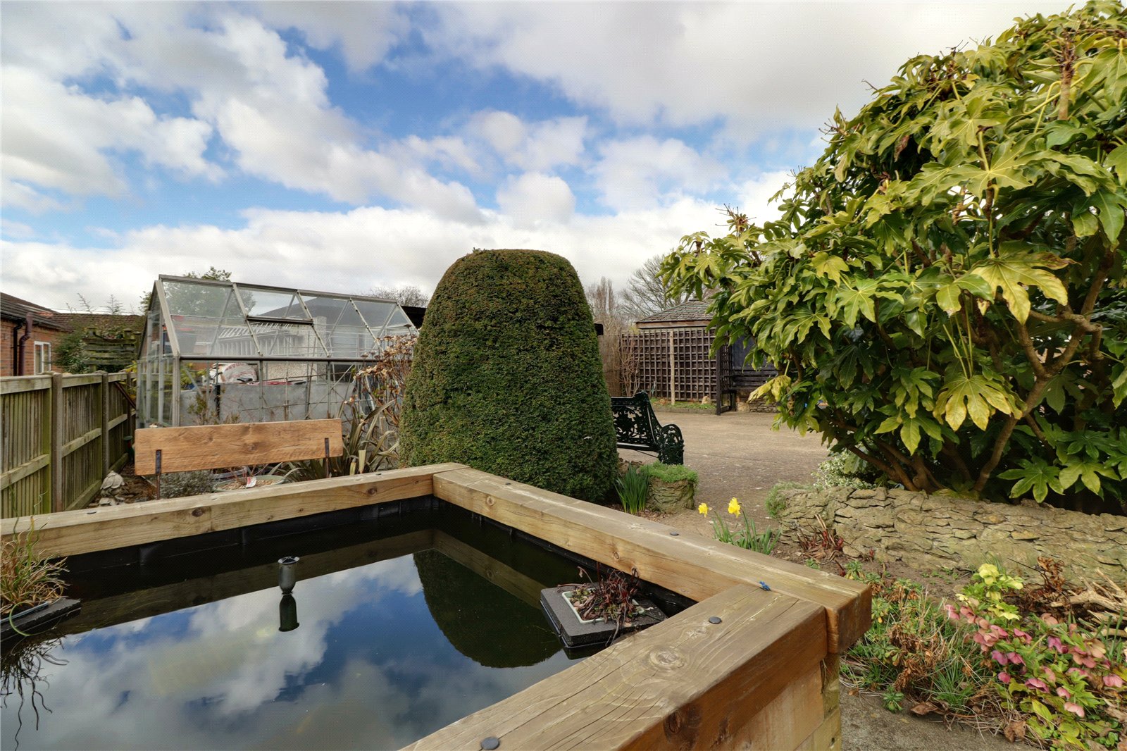 Grounds    The grounds are found to the southern side with a substantial concrete laid driveway providing parking for an excellent number of vehicles and allowing access to garaging with there being a stone and brick top well. Gardens are of a manageable size enjoying good levels of privacy being lawned with pebbled and shrub borders and a number of seating areas.