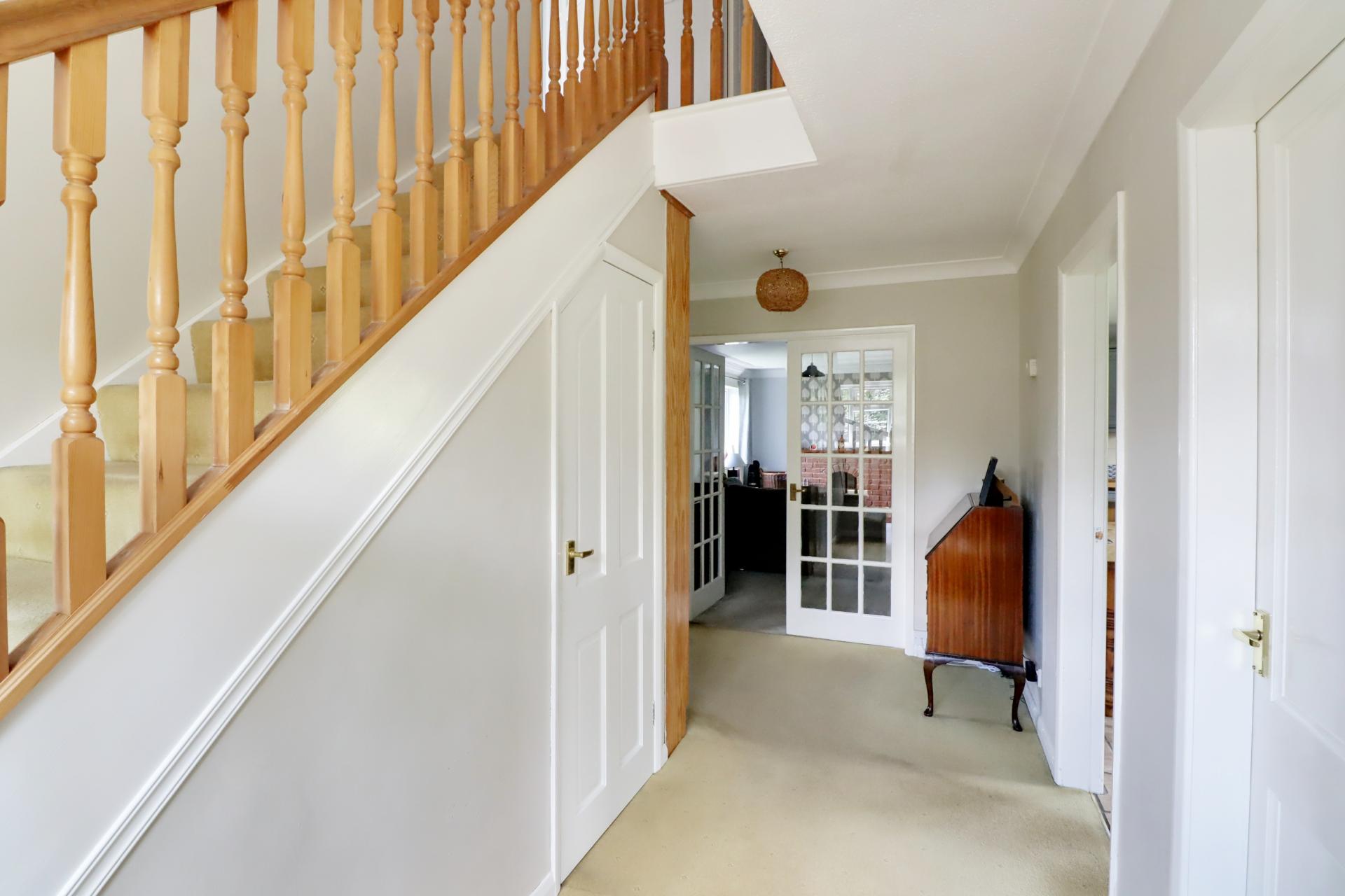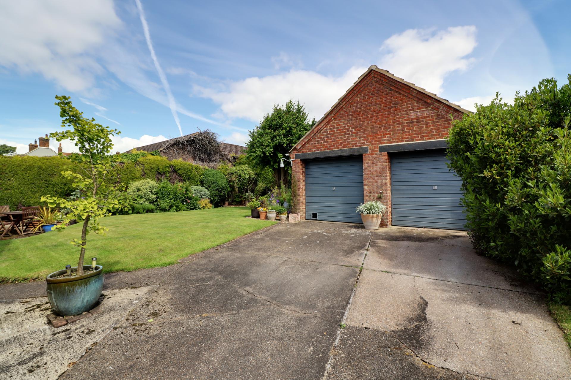GROUNDS The property sits in private mature gardens being elevated from the road behind lawned gardens with mature shrub and tree borders providing excellent privacy and screening, a sheltered front entrance door and a sweeping central driveway that continues down the side of the property allowing extensive parking and access to the detached double garage. The rear garden is principally lawned with mature borders with a hard standing seating area.