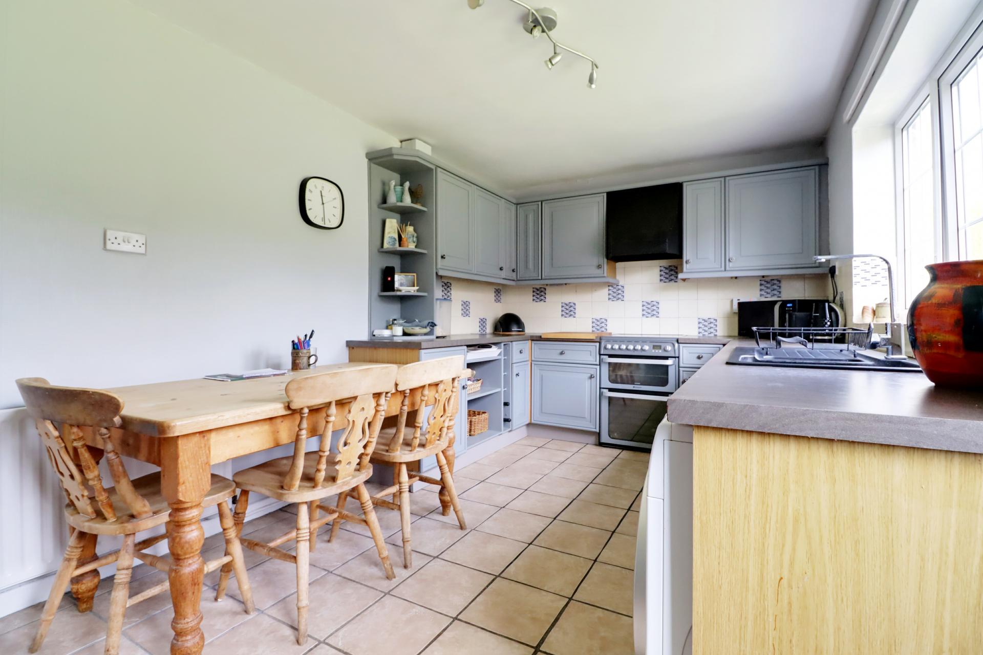 ATTRACTIVE FITTED DINING KITCHEN 17'5" x 9' (5.3m x 2.74m). With a rear uPVC double glazed window with matching entrance door allowing access to the garden. The kitchen enjoys a range of matching colour fronted low level units, drawer units and wall units with open display shelving, a patterned rolled edge working top surface with tiled splash back incorporating a one and a half bowl sink unit with a drainer to the side and block mixer tap, space for an electric cooker with overhead extractor, space and plumbing for appliances, tiled flooring and a corner fitted cupboard housing an Ideal gas fired condensing central heating boiler.