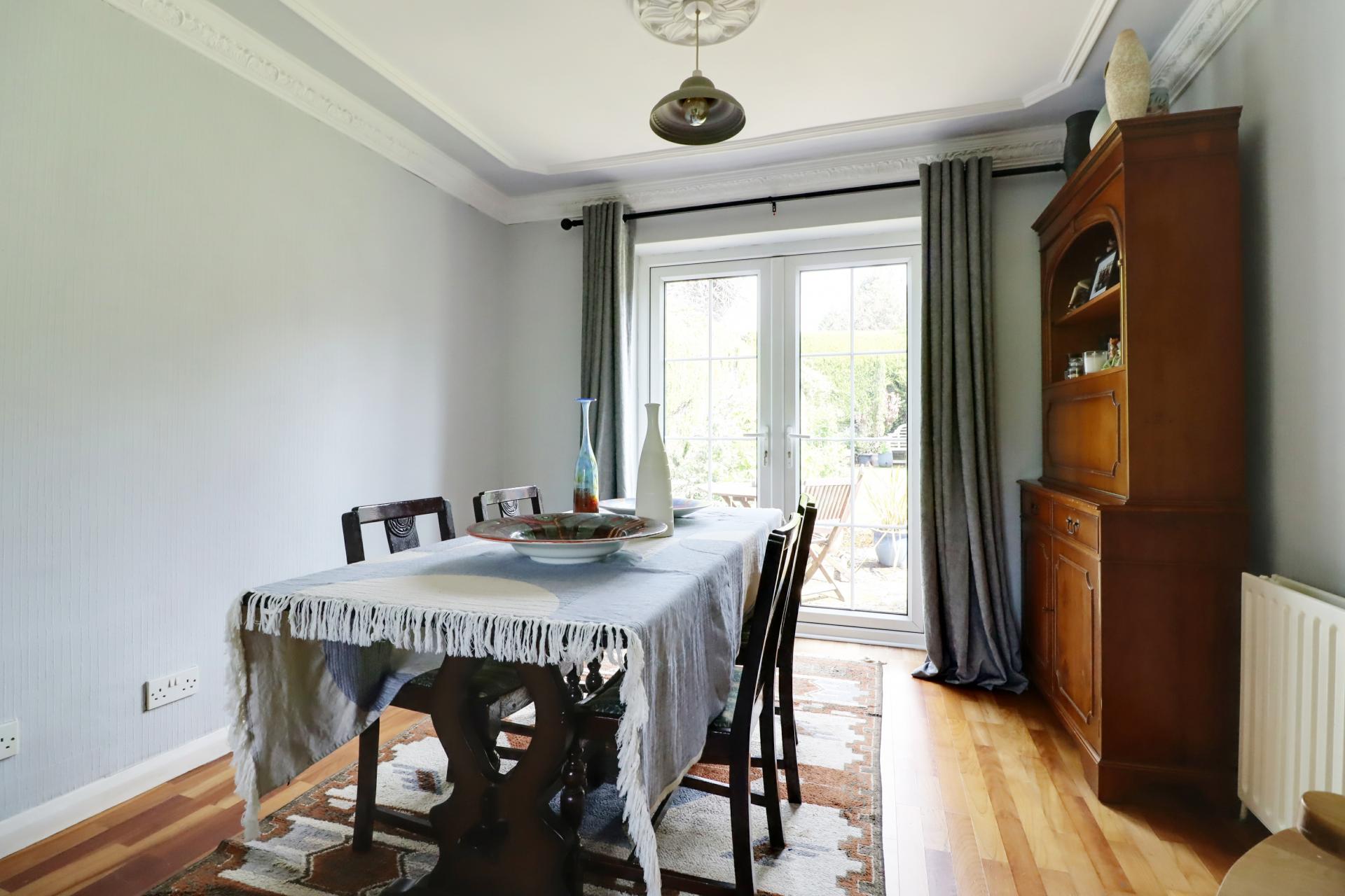 FORMAL DINING ROOM 10'1" x 8'7" (3.07m x 2.62m). Having rear uPVC double glazed French doors allowing access to the garden, solid wooden flooring, decorative wall to ceiling coving and ceiling rose.