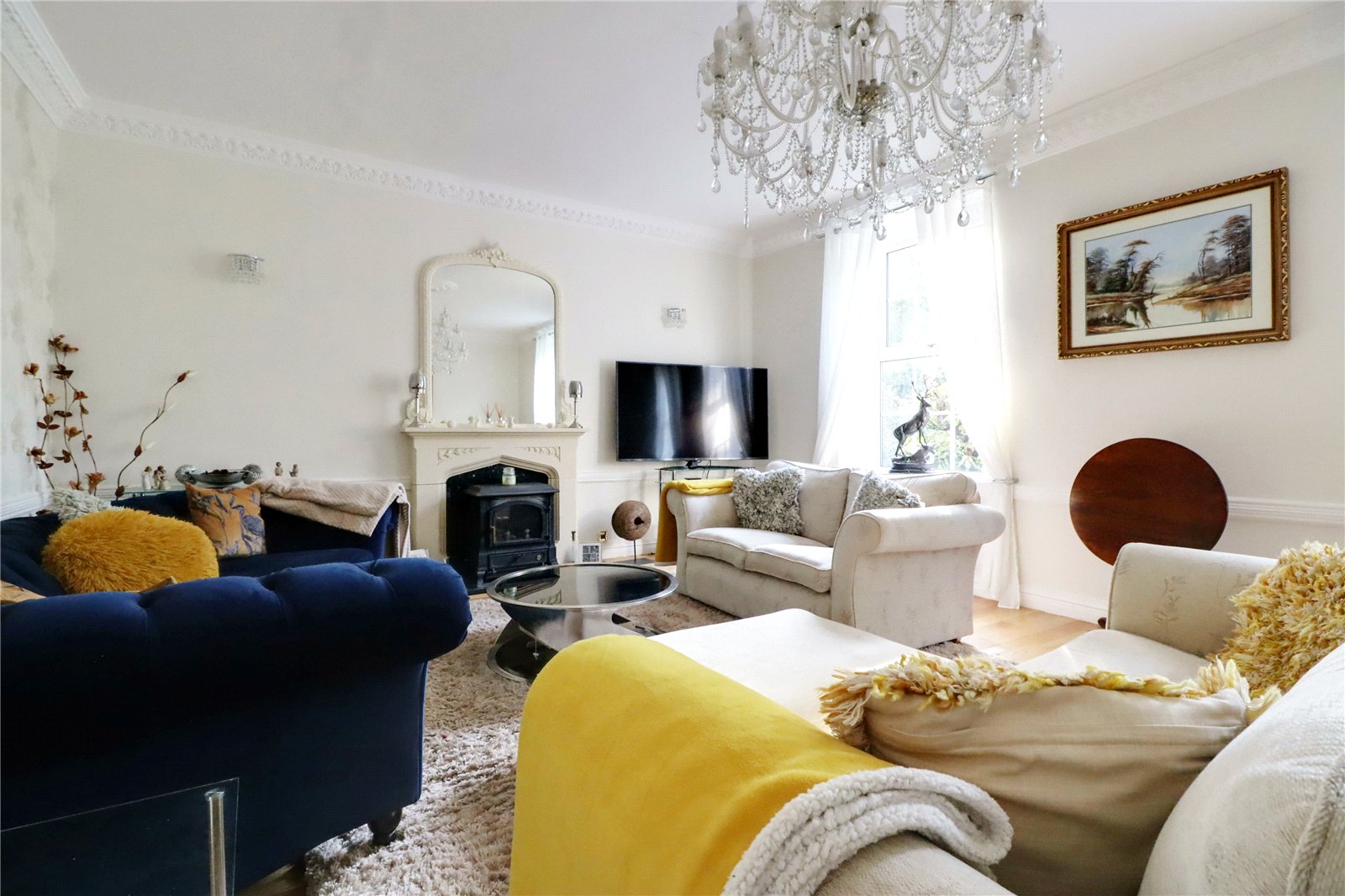 Formal Lounge 16'8" x 22'8" (5.08m x 6.9m). Twin front uPVC double glazed windows, oak flooring, multi fuel cast iron stove with stone surround and granite hearth, dado railing, handsome wall to ceiling coving and ceiling rose.
