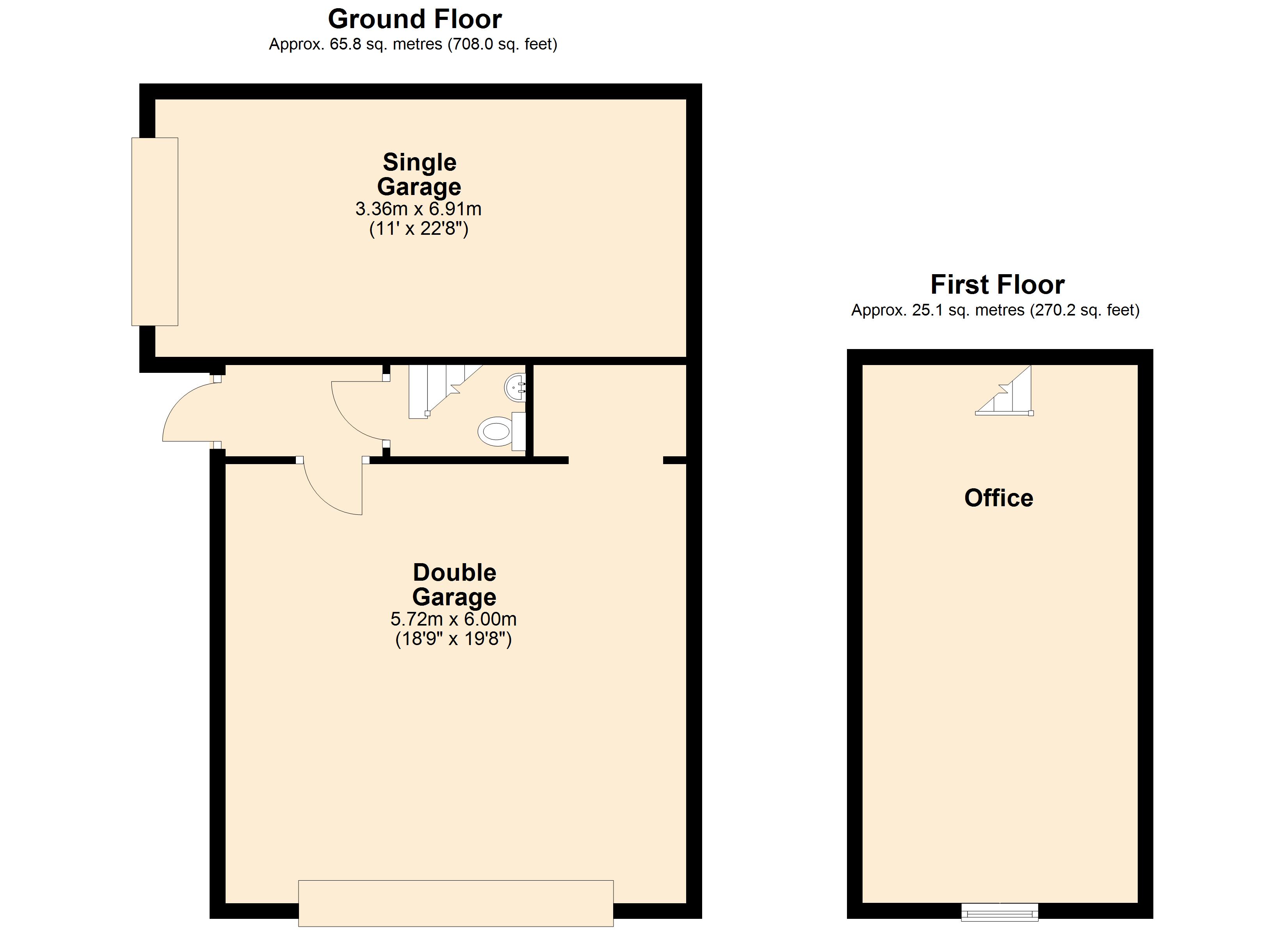 Single Garage 11' x 22'8" (3.35m x 6.9m). With roller front door, internal power and lighting being all block based with a timber frame and has an adjoining rear garden store.