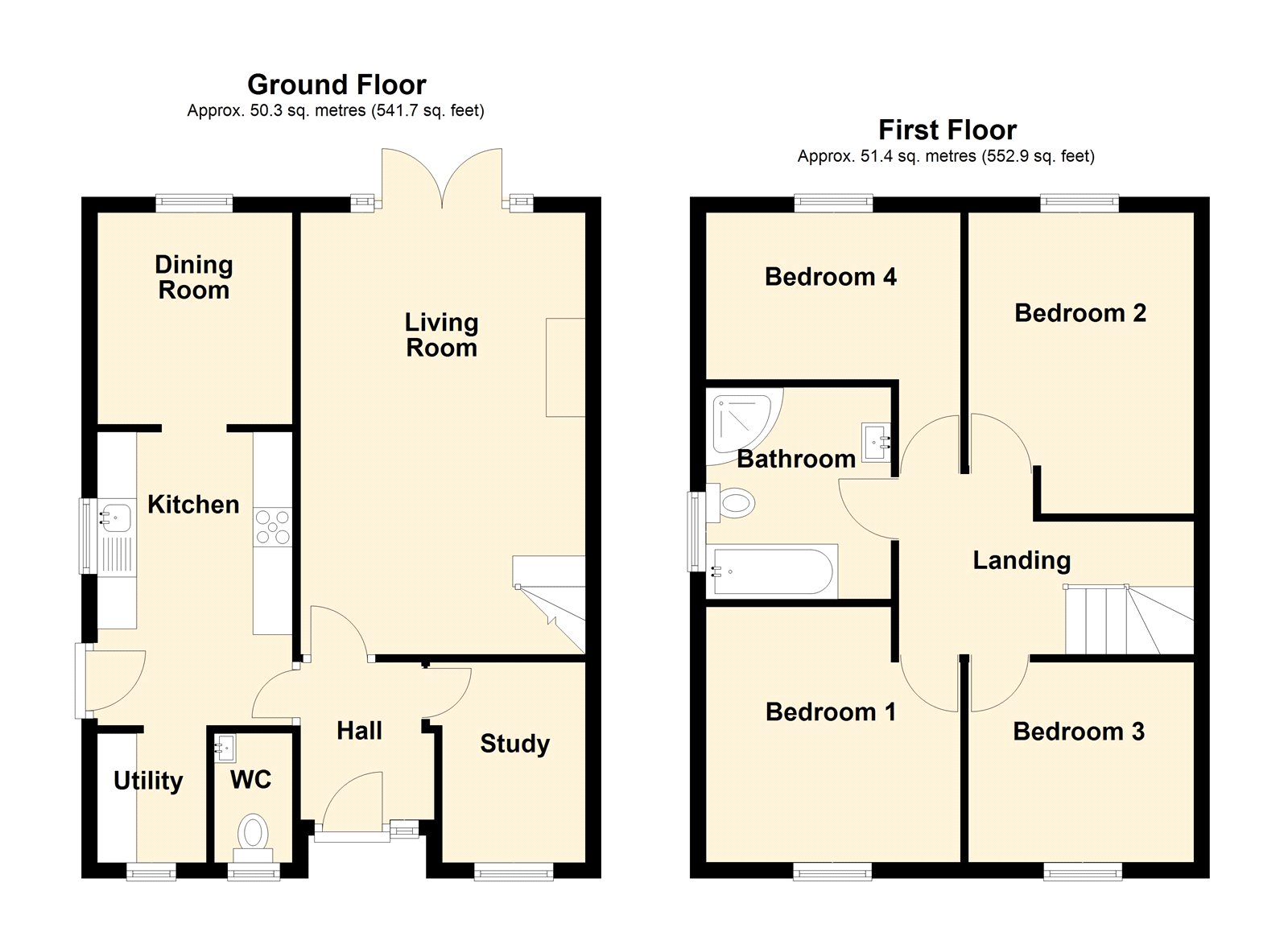 Utility Room 4'6" x 5'5" (1.37m x 1.65m).