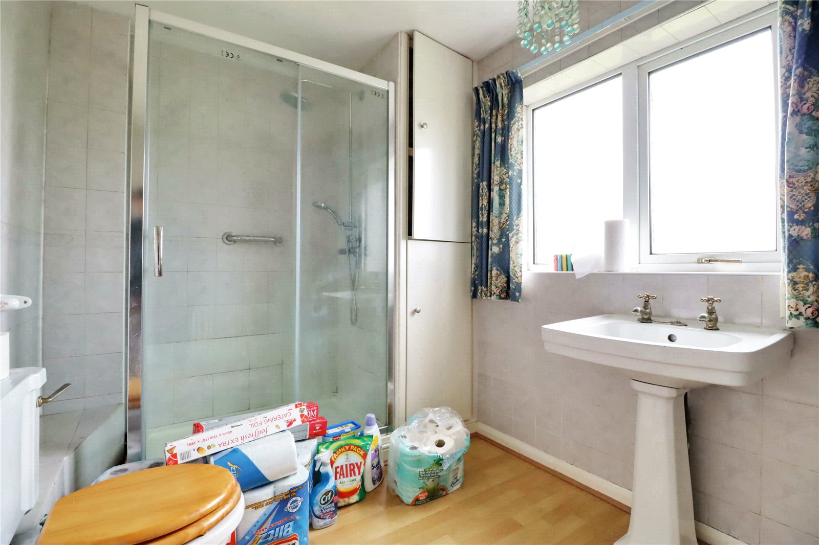 Shower Room 9'10" x 6'11" (3m x 2.1m). Front uPVC double glazed window with patterned glazing, suite in white comprising a low flush WC, pedestal wash hand basin and double shower cubicle with adjoining fitted store cupboard.