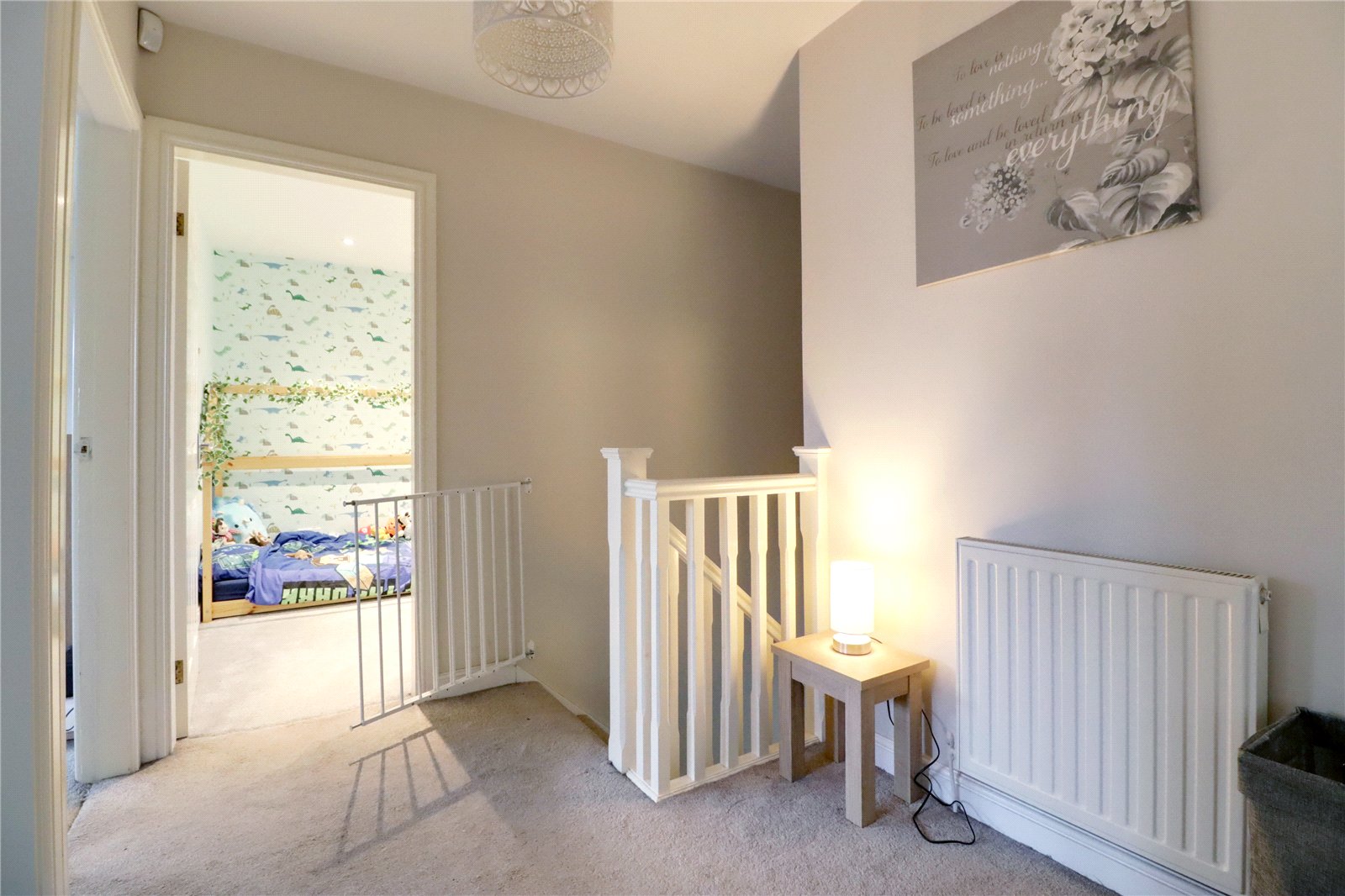 First Floor Central Landing 8'8" x 6'4" (2.64m x 1.93m). Continuation of open spell balustrading, loft access and doors through to;