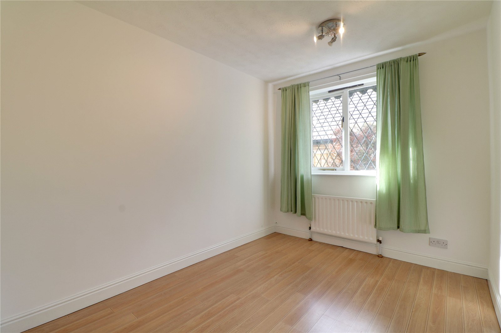 Bedroom 2 7'10" x 9'10" (2.4m x 3m). With a side hardwood double glazed window and laminate flooring.