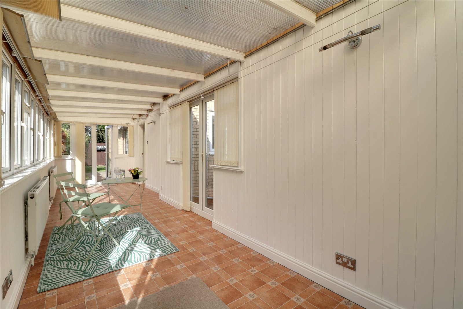 Side Conservatory 28'10" x 7'7" (8.8m x 2.3m). With a polycarbonate lean to roof, surrounding uPVC double glazed windows, cushioned flooring, two twin double glazed doors allowing access both the front and rear garden and a hardwood internal door leads through to;