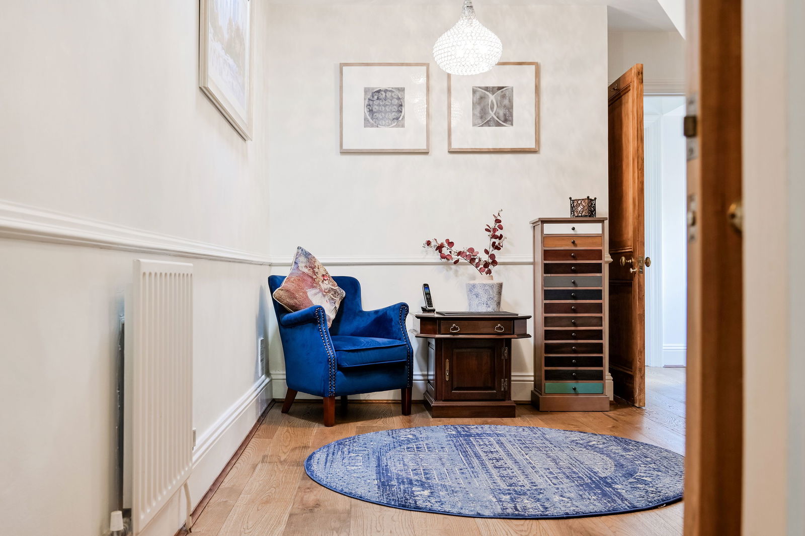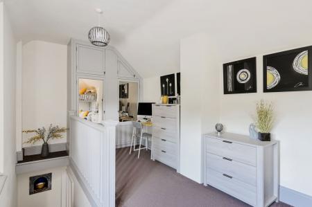 Elsewhere on the ground floor is a flexible double bedroom with its own en-suite shower room, ideal for guests or those looking for single-level living. A separate reading room and a second entrance lobby, currently used as a utility and study area, enhance the home’s versatility.