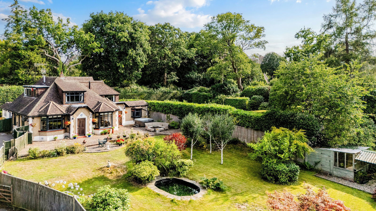 Tucked away along a peaceful country lane in the desirable village of Dormansland, this enchanting three-bedroom home offers a rare combination of period character, modern touches, and superb outdoor space. Surrounded by mature gardens and benefiting from a generous double garage, this is a home that balances rural charm with everyday convenience.