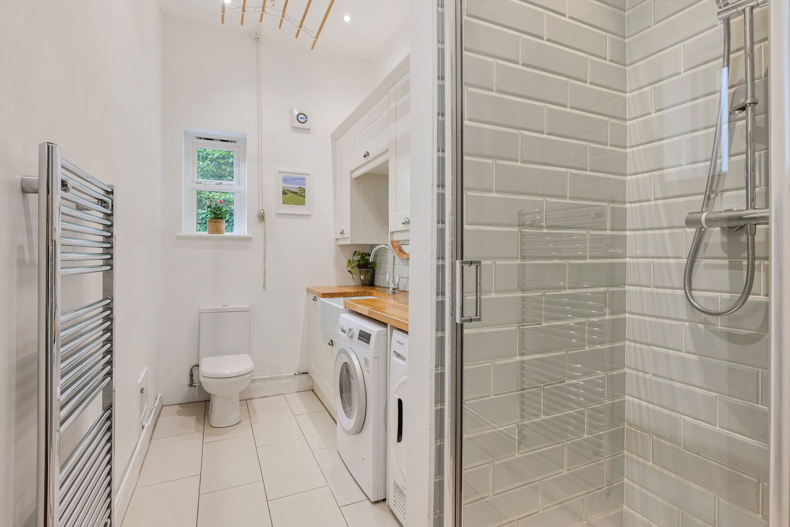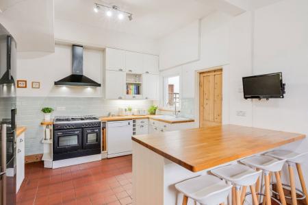 Inside, the heart of the home is the spacious kitchen/dining room, with its solid wood worktops, butler-style sink, and a central island perfect for casual dining or entertaining. The kitchen flows through to a light-filled reception room that opens onto the rear garden, ideal for relaxing or hosting guests. A separate sitting room/study to the front provides a quiet retreat or an excellent home office. Upstairs, four well-proportioned bedrooms are served by a generous family bathroom, making the layout ideal for growing families or visiting guests.