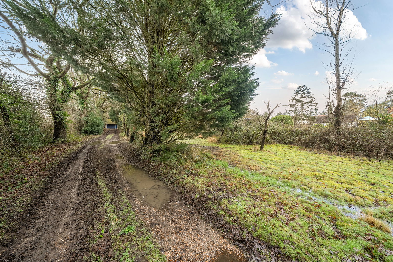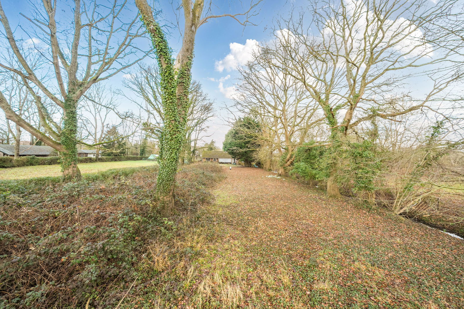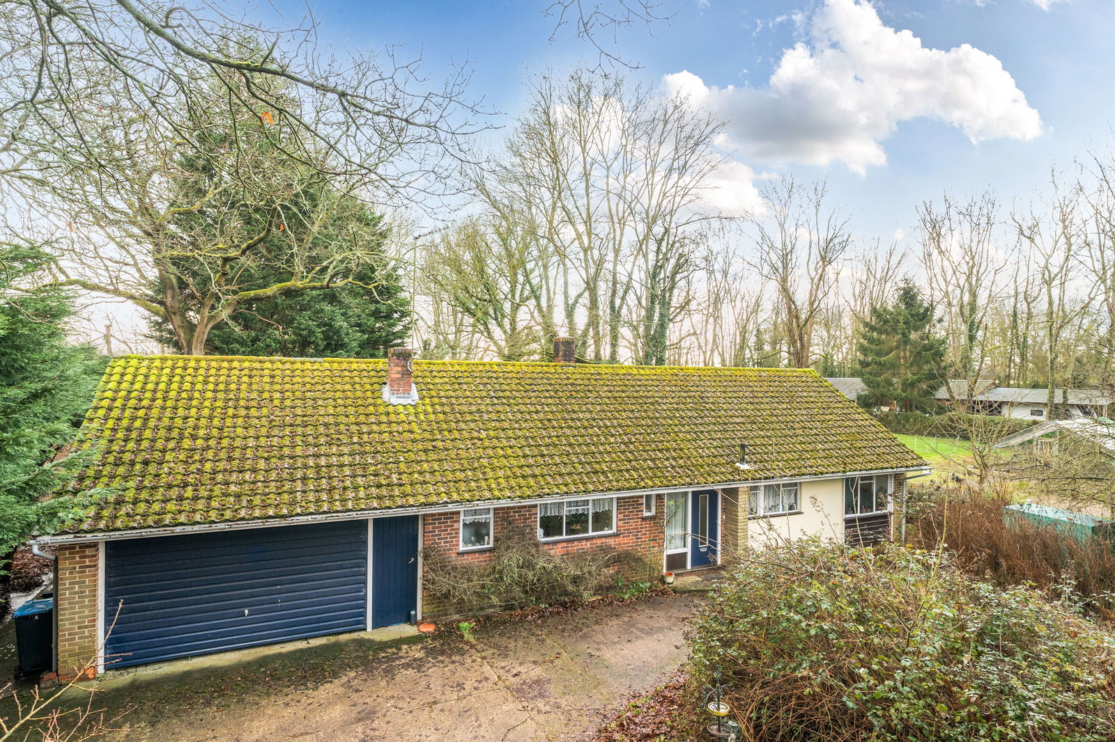 Externally, the bungalow sits centrally within its plot, surrounded by mature gardens and paddock that provide privacy, a strong sense of seclusion and ample room for landscaping, outbuildings or further development, subject to consent. The long driveway and garage provide plenty of parking, while the scale of the plot offers substantial development opportunities to those seeking space for gardening, leisure or equestrian interests.