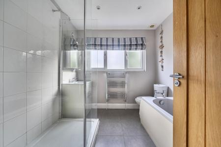 A key feature of the layout is the adaptability of the ground floor accommodation. Two bedrooms and a bathroom are positioned together and are set up perfectly to function as a self-contained annex if required, ideal for multi-generational living, guests or an older child, yet they also integrate effortlessly as part of the main house depending on a buyer’s needs. Upstairs, three further well-proportioned bedrooms, including a generous principal bedroom with ensuite, with the other two served by a family bathroom.
