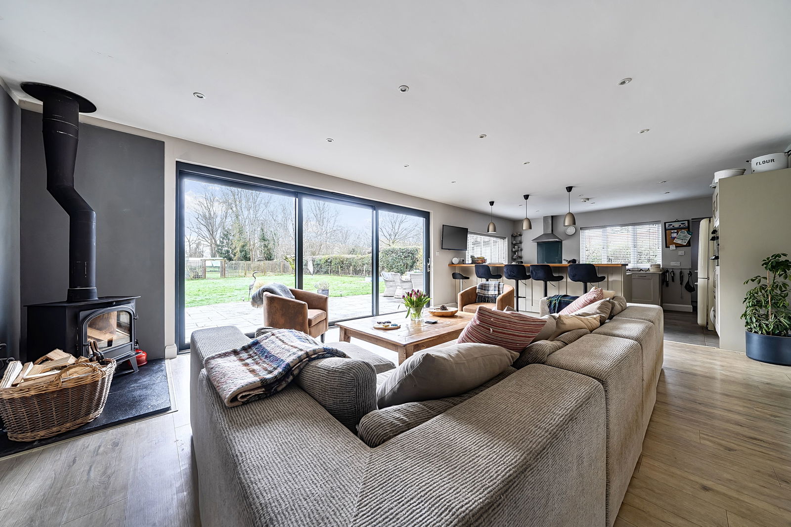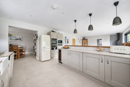 The heart of the home is a superb 32 ft open plan kitchen/reception room, perfectly designed for modern family life and entertaining. Bi-fold doors span the rear elevation and open directly onto a large patio, creating a seamless connection to the garden and making the most of the beautiful setting. A separate dining room provides a more formal entertaining space, while a cosy snug and a dedicated home office offer additional flexibility for everyday living and home working.