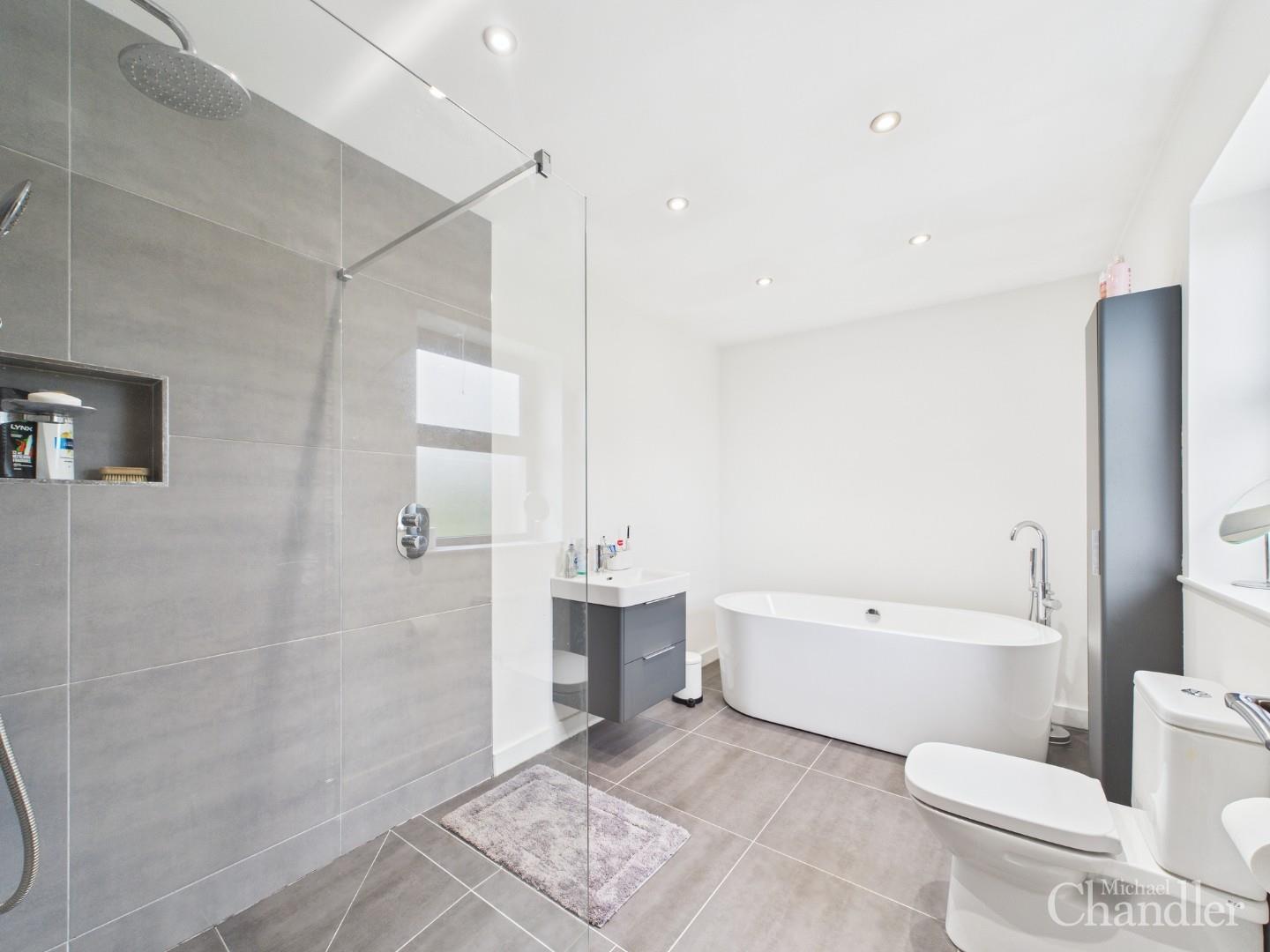 Luxury family bathroom complete with a stylish four piece suite including a walk in shower