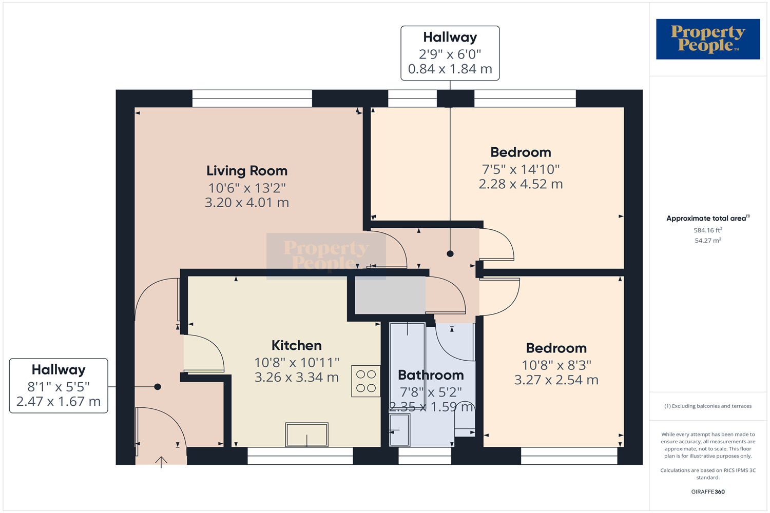 Bedroom 3.27m (10'9) x 2.54m (8'4)