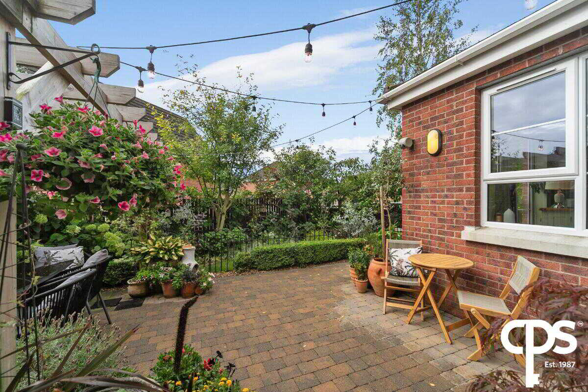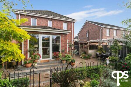 Feature block paving and driveway with ample parking. Includes OHME electric car charger and external twin socket. Rear garden area with beautifully maintained flowerbeds and mature shrubbery, fixed timber pergola