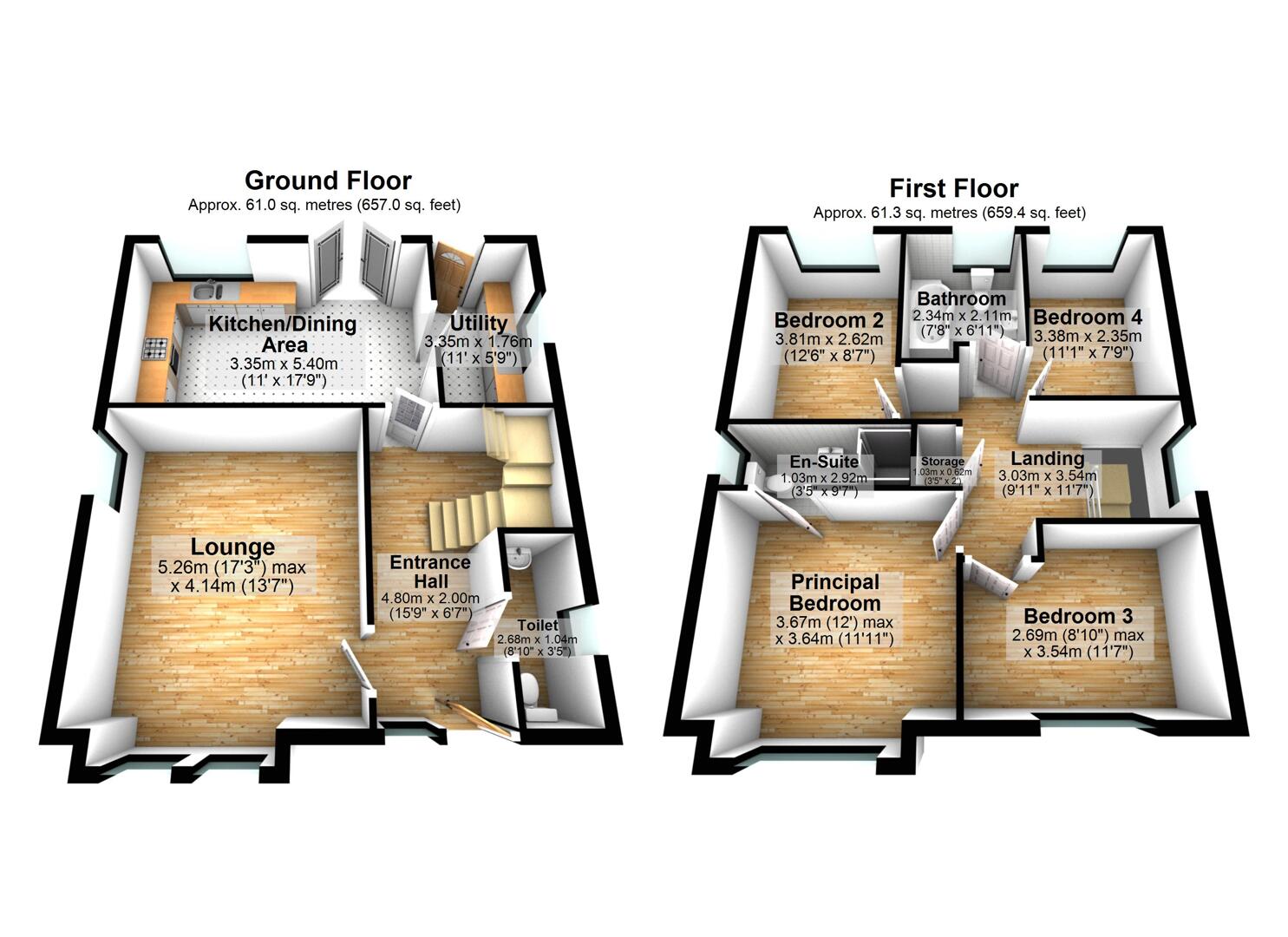 Internally the property features a spacious and bright lounge, an open plan living/kitchen with a range of modern fitted units, complemented by a utility room and WC. On the first floor there are four well-proportioned bedrooms, principal with ensuite shower room and a modern family bathroom.