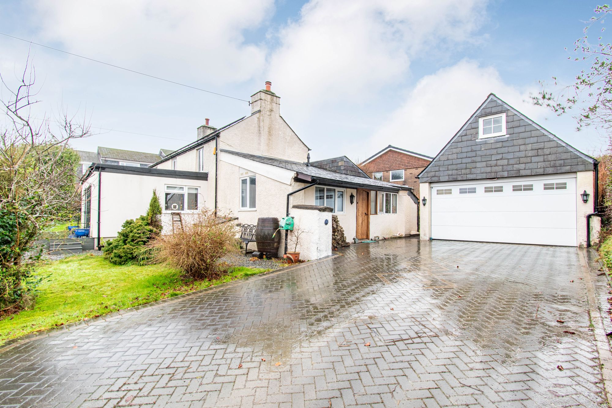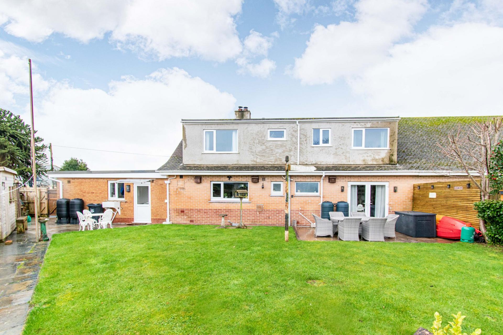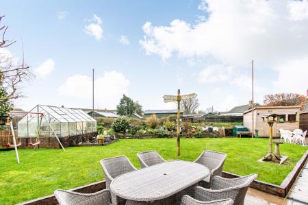 - Generous landscaped garden with lawn, patio, and raised beds