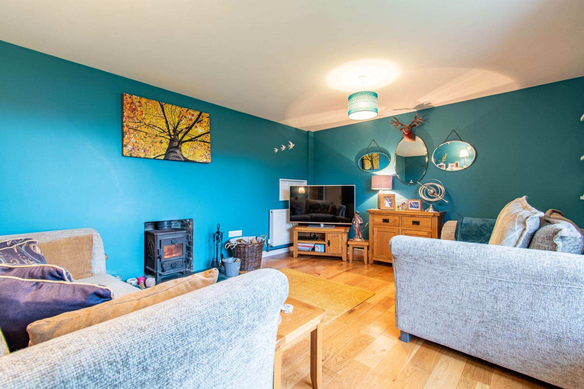 - Living room with a wood-burning stove