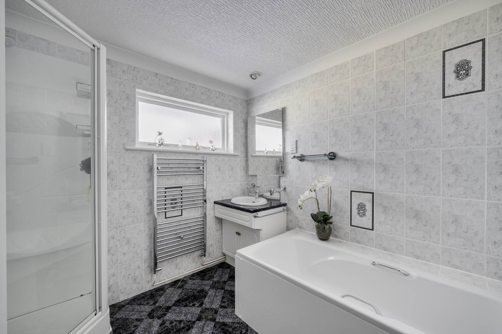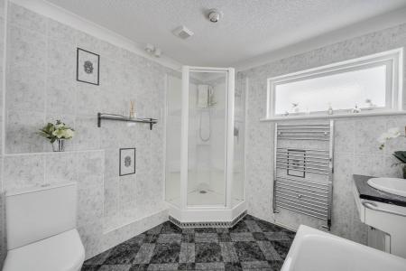 Bedroom one is a double bedroom which includes sliding mirror fronted wardrobe doors and faces the front. Bedroom two is a double bedroom and faces the front. Bedroom three faces to the rear and looks through to the conservatory. There is a useful room which was originally bedroom four but has been adapted to provide a larder room fitted with a range of wall and base units and has space for American size fridge/freezer. The bathroom has a low level WC, vanity unit with shaped sink, bath, corner shower unit and heated towel rail.