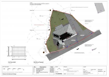 The site is currently a mix of open ground and former garage bases, the land sits behind Lanchard Rise with a natural tree line to the rear. The approved plans include a considered drainage design, well‑spaced plots, and a layout that makes the most of the site’s privacy and greenery.