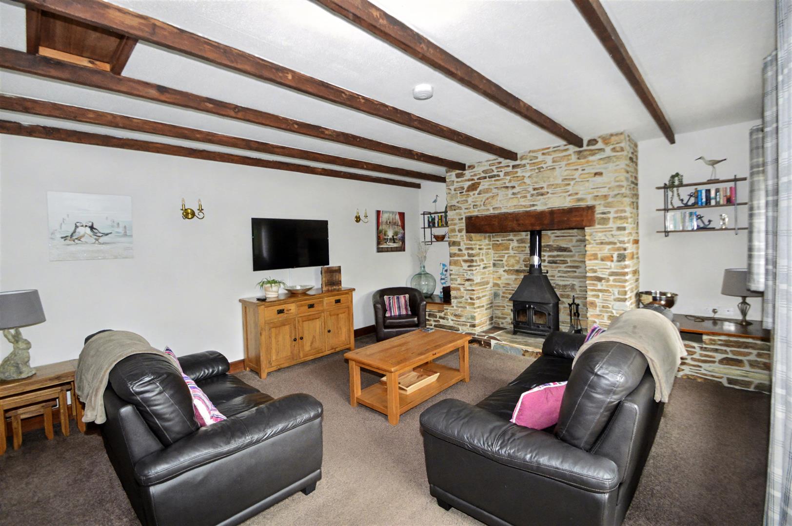 Little Barn (Sleeps 4) - Little Barn is a well presented popular holiday letting cottage. The accommodation benefits from wooden and uPVC effect double glazing and oil fired central heating, comprising:- Sitting Room; tiled floor, woodburning stove on a granite hearth. Stairs to the first floor, kitchen / dining room; Fitted wall and base units under granite effect roll top worksurface, stainless steel sink and drainer, free standing electric cooker with extractor hood above. On the first floor: Bedroom 1; vaulted ceiling with exposed 'A' framed beams and Velux window. Bathroom; bath with shower over, wash basin, w/c, built in airing cupboard. Bedroom 2; vaulted ceiling with exposed 'A' frame beams, Velux and gable end window.
