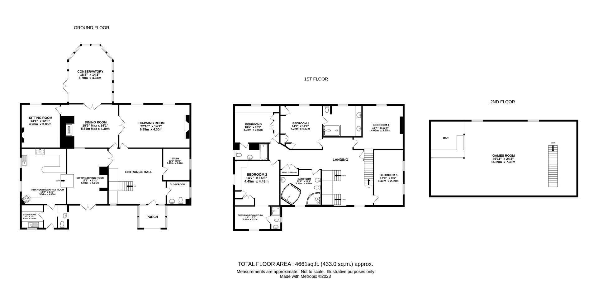 The House - Siblyback House is a most appealing, well proportioned country house, which was remodelled and extended in 1989 and is stone faced, cavity wall construction under a slate roof. Planning consent has been granted to extend the house to form a breakfast room off the kitchen. The extensive and well presented accommodation is arranged over 3 floors providing 5 reception rooms, 5 double bedrooms - 3 with ensuites and a games room on the second floor. The accommodation benefits from uPVC double glazing and oil fired central heating and briefly comprises: Open fronted entrance porch; Large entrance hall; Drawing room; views over the garden and land towards Siblyback Lake. Fire place with inset LPG gas fire. Dining room; feature exposed granite inglenook fireplace with woodburning stove. Conservatory; French doors opening out onto the brick paved patio, views to the ponds and lake. Sitting room; open fireplace, Study; Cloakroom; Dining / Sitting room with French doors to garden. Kitchen / Breakfast Room; fitted wall and base units, oil fired AGA, built in electric oven and hob, tiled floor. Entrance Hall / boot room; Utility; fitted base units, tiled floor, Cloakroom. On the first floor, Large landing; airing cupboard; staircase rises to the second floor. Master bedroom; fitted wardrobes, dressing table and chest of drawers, window to the front. En suite vanity unit with twin wash basins, large shower cubicle with fixed rain head shower and W/C. Bedroom 3 fitted wardrobes, dressing table and chest of drawers, window to the front and views to the Siblyback Lake. En suite bath with shower, wash basin and W/C. Bedroom 2 fitted wardrobes and chest of drawers. Study / Dressing room. En suite, tiled floor, wash hand basin, W/C and shower. Family bathroom, large round jacuzzi bath, shower cubicle, wash hand basin, W/C and bidet. Bedroom 4 with views over the rear garden and Bedroom 5 two windows to the side. On the second floor, Games Room: built in bar.