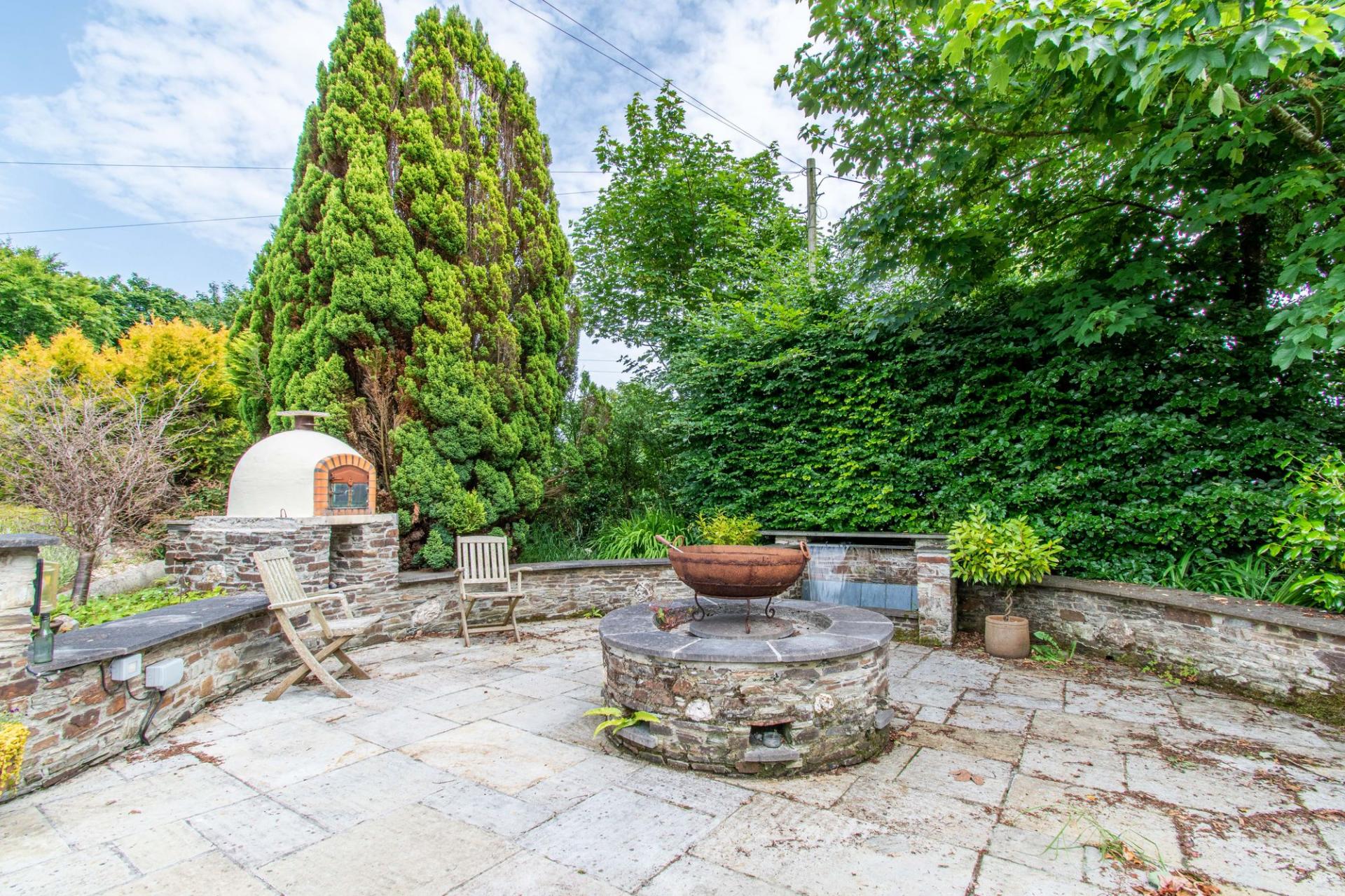 - Private and secluded outside space with large circular patio, pizza oven and covered bar