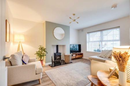 - Beautiful Lounge Featuring An Open Hearth With Stove