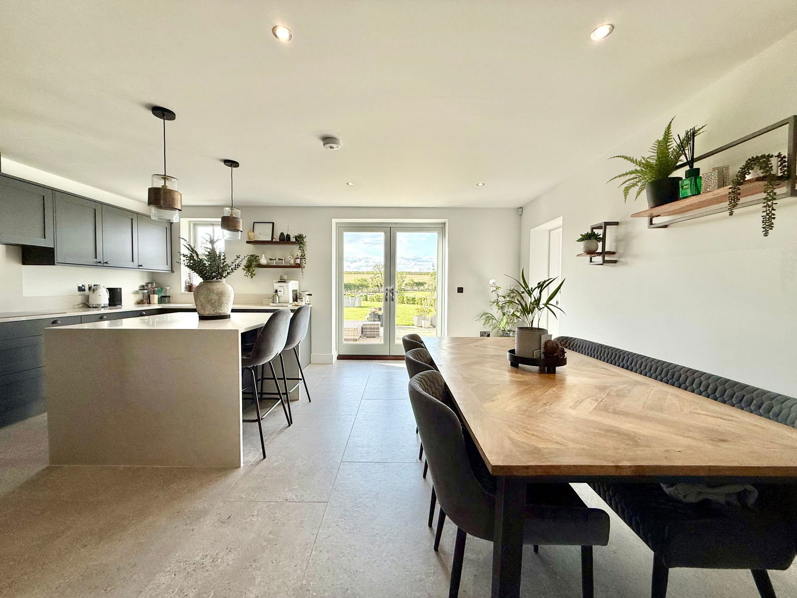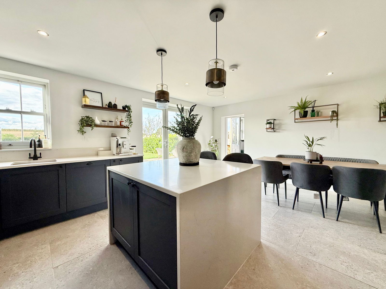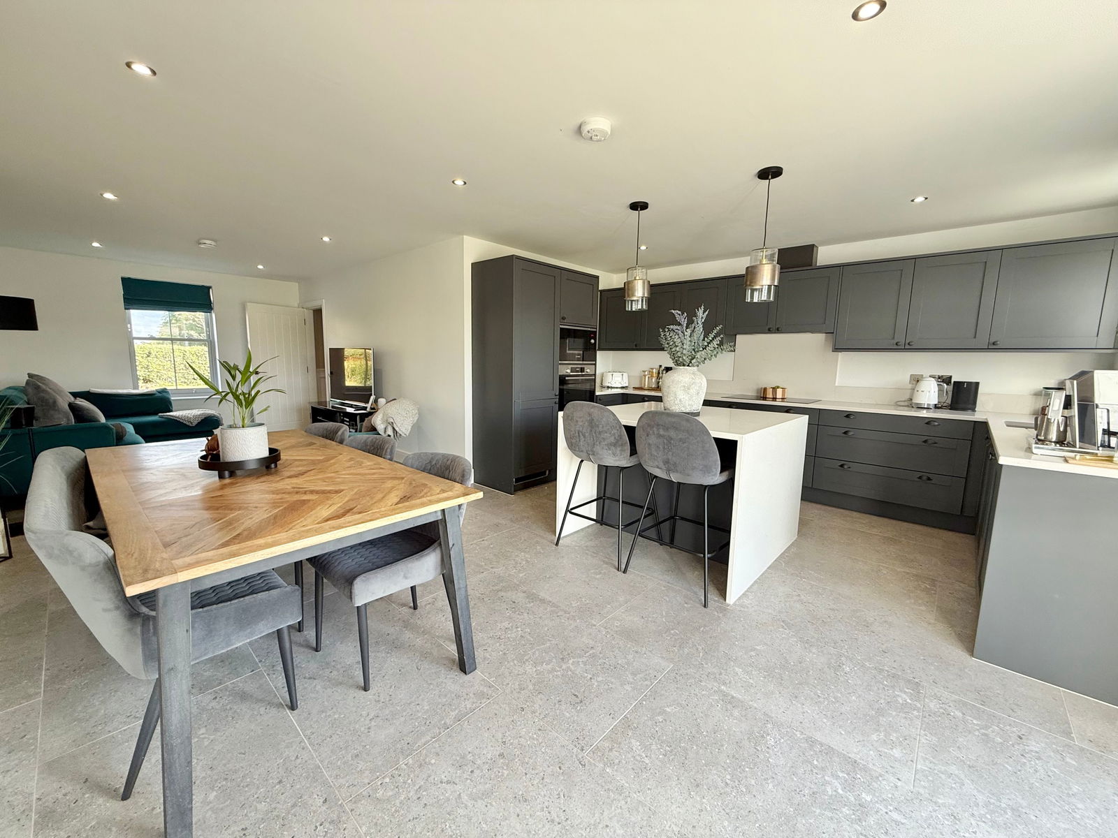 - Spacious open-plan living, dining kitchen area with bespoke cabinetry
