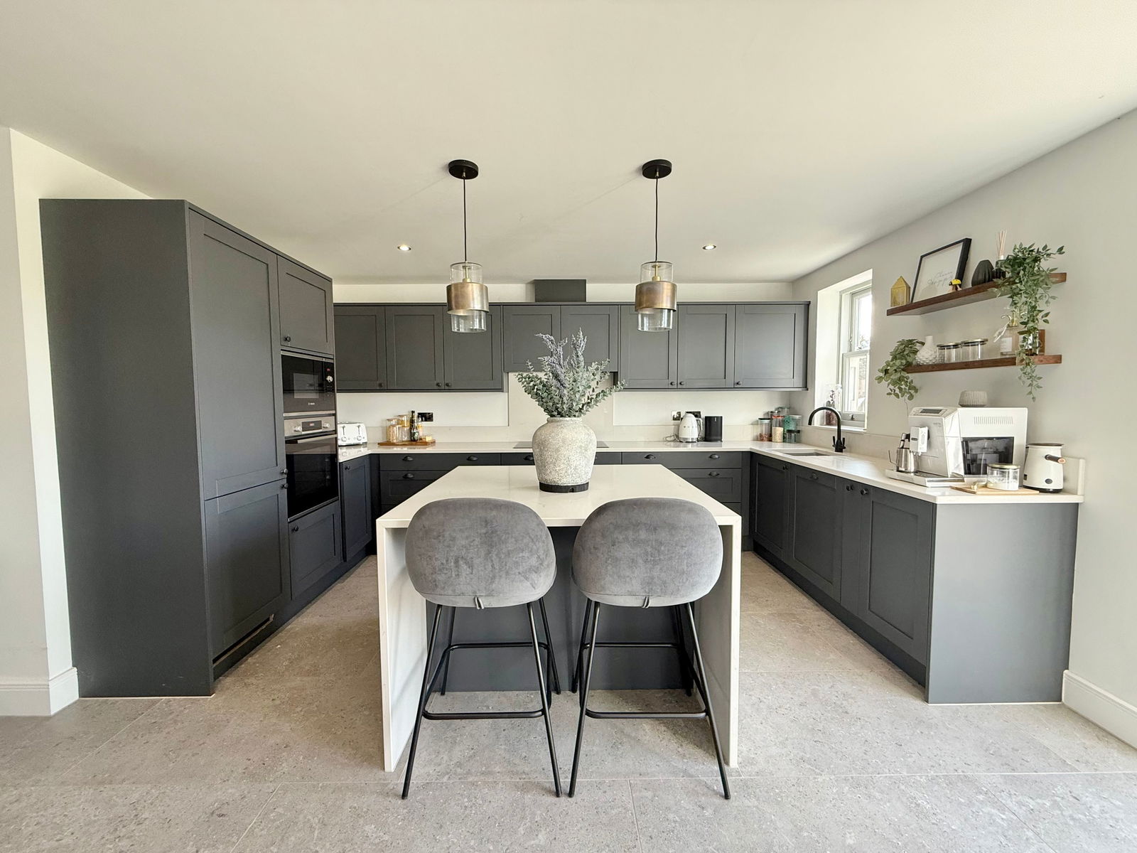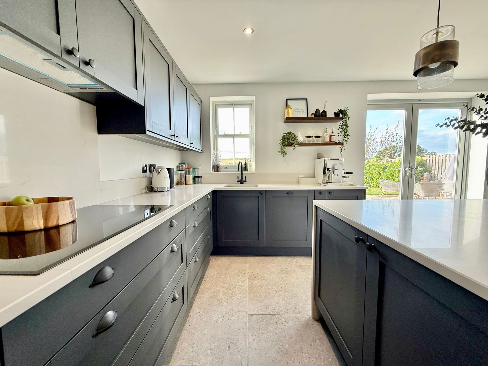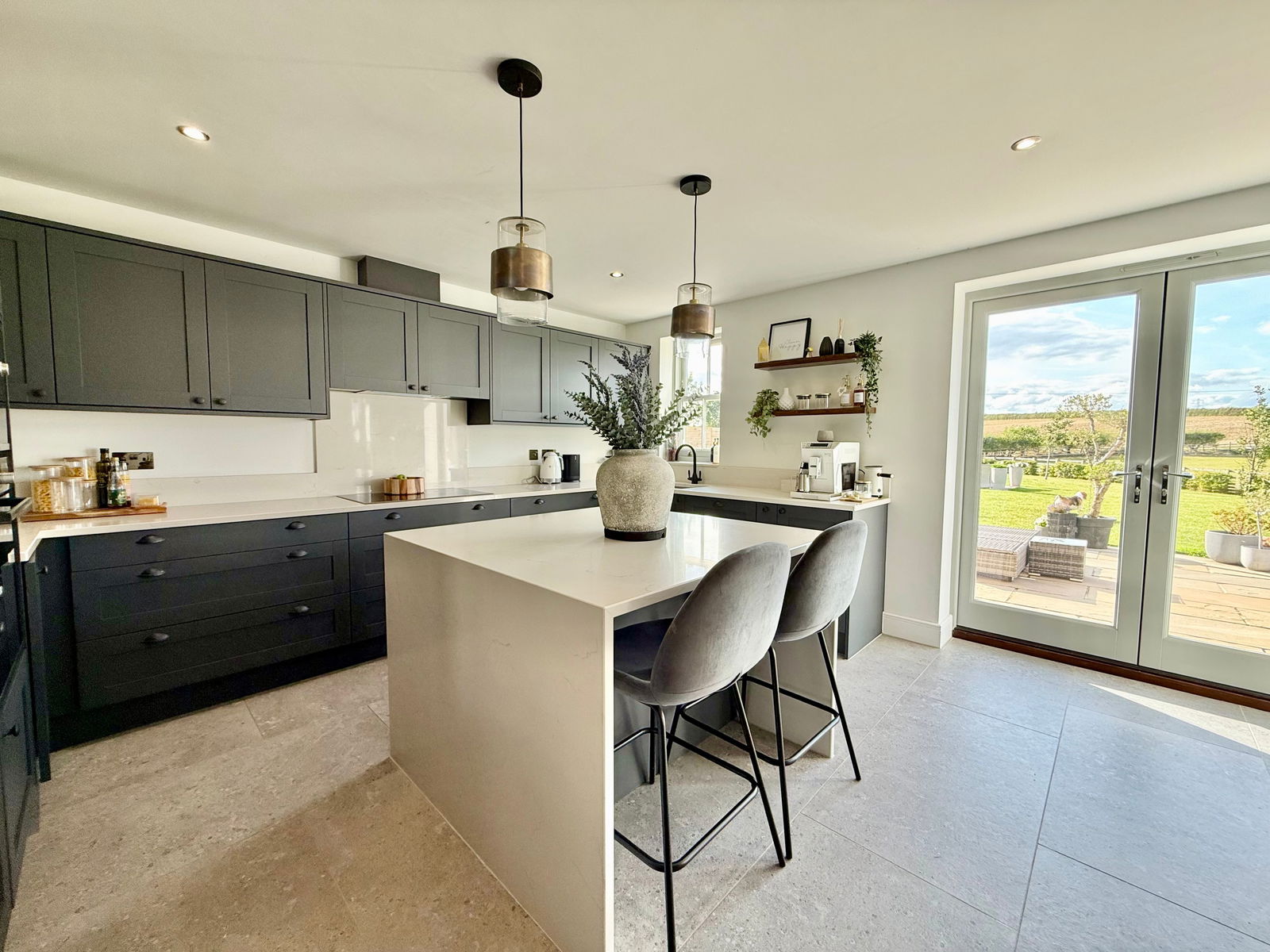 - Spacious open-plan living, dining kitchen area with bespoke cabinetry
