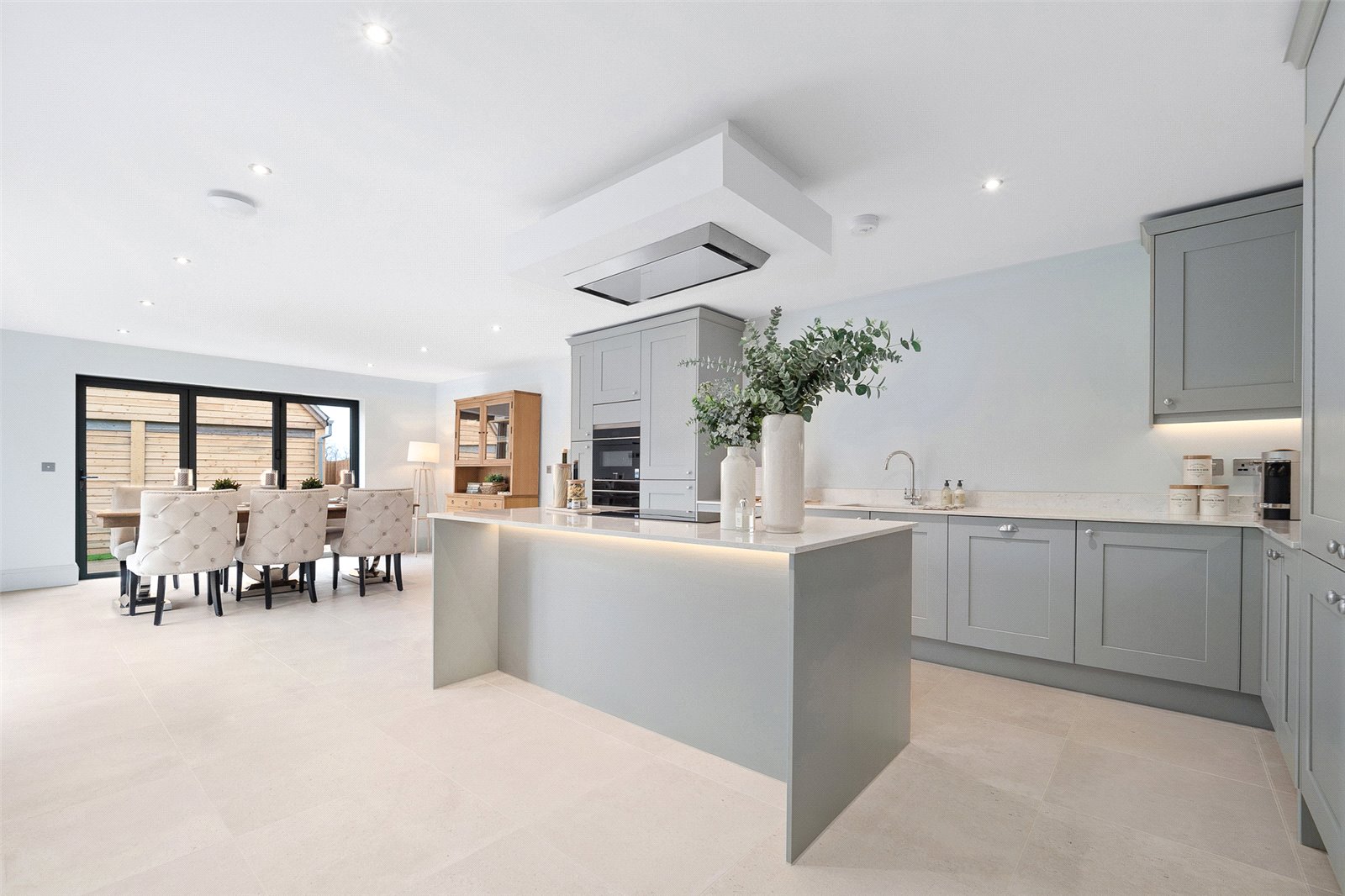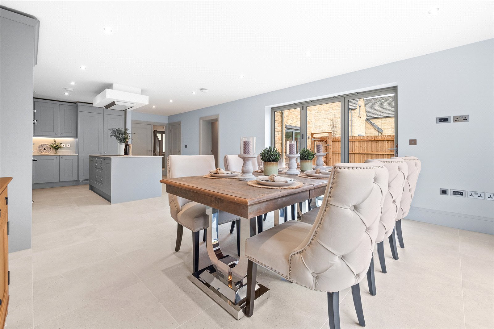 - Bi-fold doors connect the living spaces to the wrap around paved patio