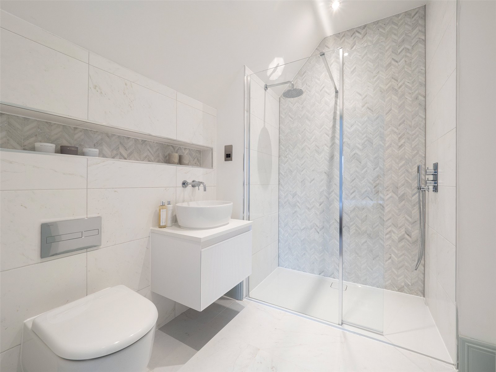 - Sanitaryware by Laufen with feature tiling by Porcelanosa to each bathroom