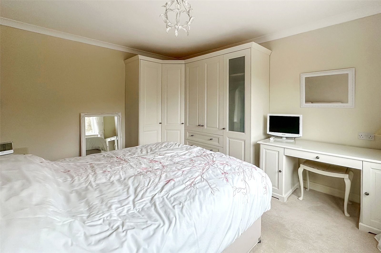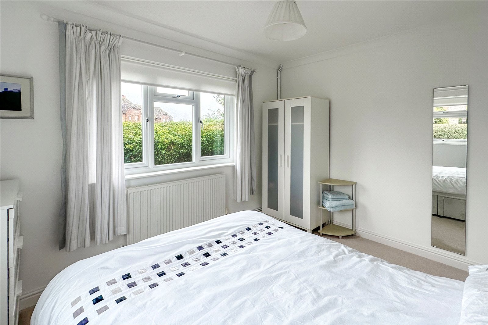 Both bedrooms are generously sized, with ample space for furnishings and storage. The second bedroom enjoys a dual aspect with south and west-facing windows. The kitchen featuring plenty of worktop space and ample cupboards, with direct access to the rear garden. The bathroom is well appointed, complete with a bath and overhead shower, basin, WC, and integrated storage.