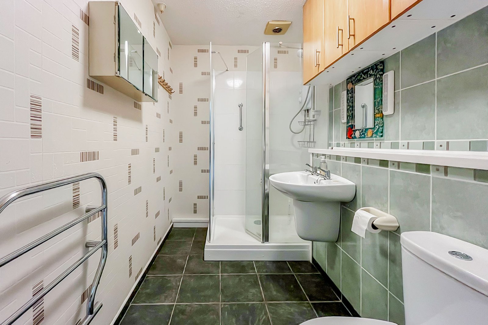 Upstairs, you will find a good size first floor landing/bedroom area/office area with Juliet balcony, bedroom with built in wardrobes and door leading to ensuite shower room/wc.